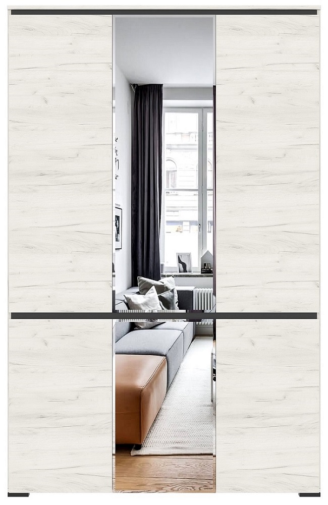 Шкаф 4С2Я с зеркалом "ГРЕТТА" Дуб Крафт белый - Антрацит