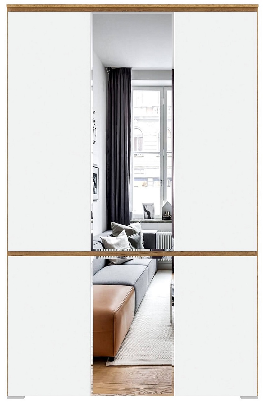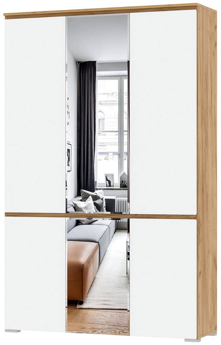 Шкаф 6С2Я с зеркалом "ГРЕТТА" Дуб Крафт золотой/Белый