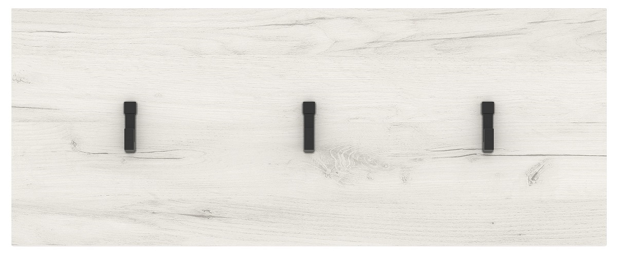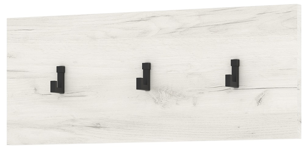 Панель 500 «ГРЕТТА» с чёрными матовыми металлическими крючками. Крепится к стене через навесные элементы.