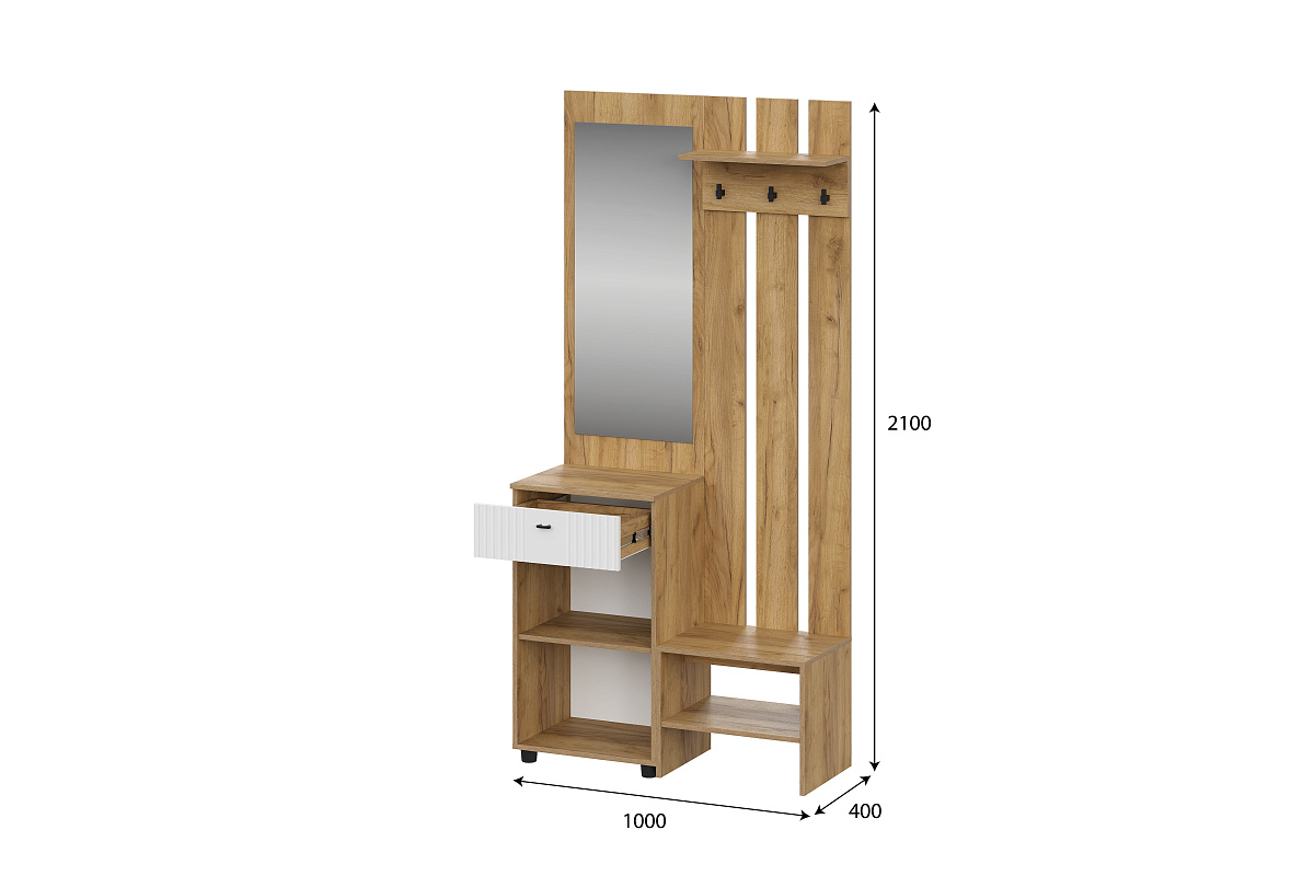 МС "Милан" Тумба для телевидеоаппаратуры с ящиками Дуб Золотой/Белый/Белый Матовый