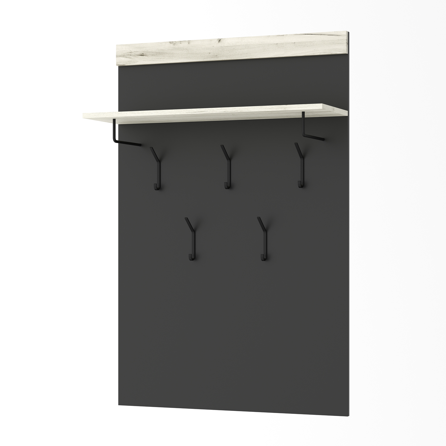 Вешалка «СОНАТА» ВШС-800 с полкой навесная. Чёрные матовые металлические крючки и уголки для опоры полки. Крепится к стене через навесные элементы. Верхняя часть вешалки обрамлёна профилем MDF.