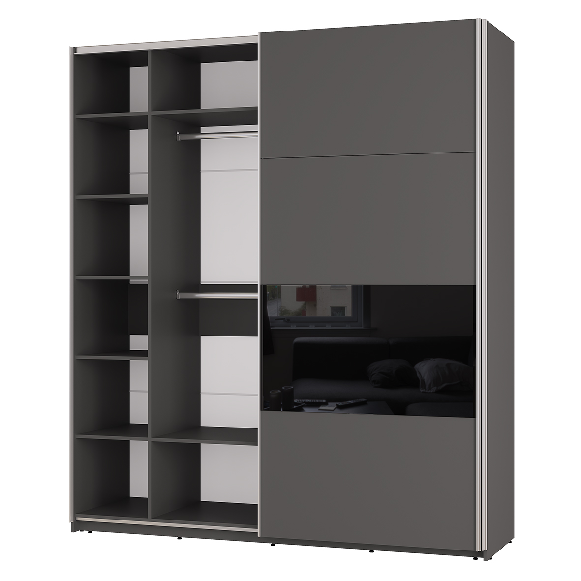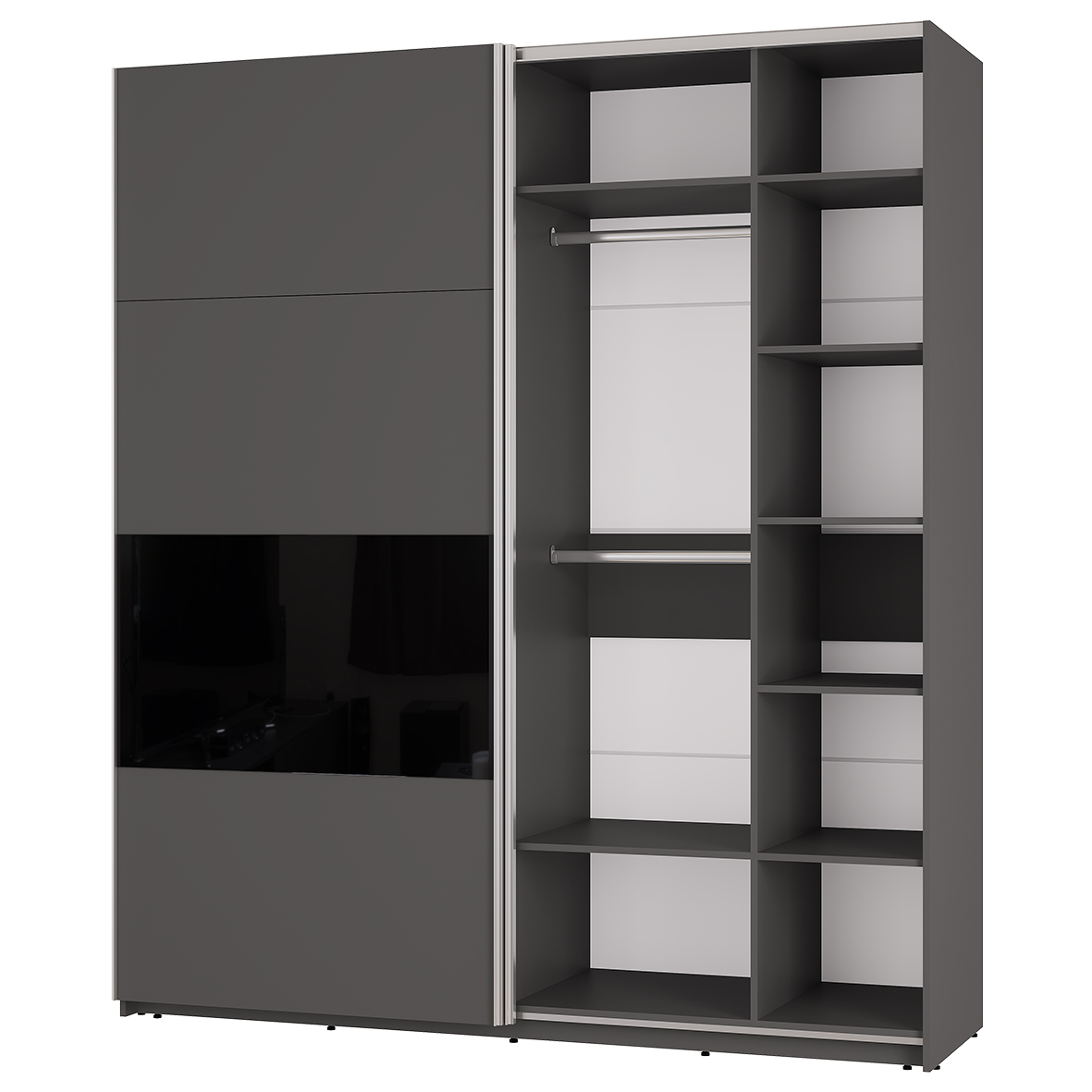 Шкаф-купе «Харви» - это идеальное сочетание функциональности и стиля. Модель подойдет как для спальной комнаты, так и для гостиной. Шкаф станет хорошим выбором для современной квартиры или дома. «Харви» не перегружен деталями, его по достоинству оценят ценители минимализма. Четкие линии корпуса и матовый фасад со вставкой из крашенного стекла (лакобель) - такой дизайн дополнит любой современный интерьер. Подвесная система фасадов RIAL, собираемых в различных конфигурациях. Регулируемые подпятники. Кромка - 0,7 мм. Максимальная нагрузка на полку - 10 кг. Максимальная нагрузка на штангу - 10 кг.