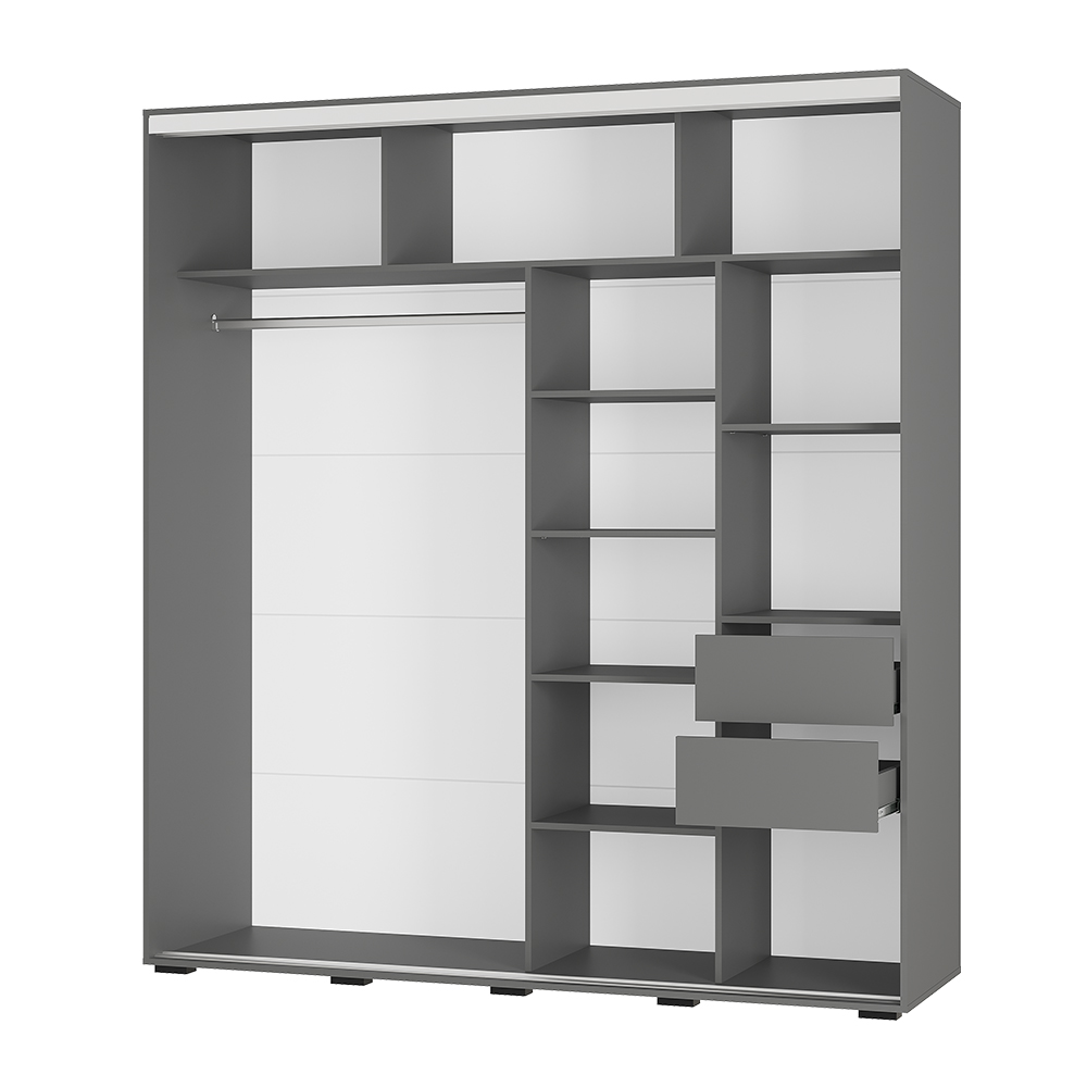 Шкаф-купе «Крафт-6» - это неизменный хит продаж. Вместительная модель идеально подойдет для обладателей большого гардероба. Благородный оттенок «графит» подчеркивает красоту дверей, которые декорированы прозрачным стеклом и белой лакобелью. Зеркало - тип обработки фацет. Стекло - белый лакобель, тип обработки фацет.
