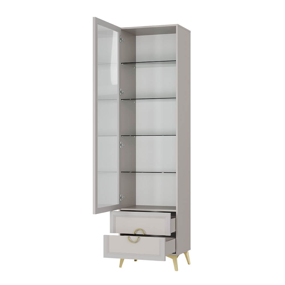 Комплектуется стеклополками и стеклостворками.