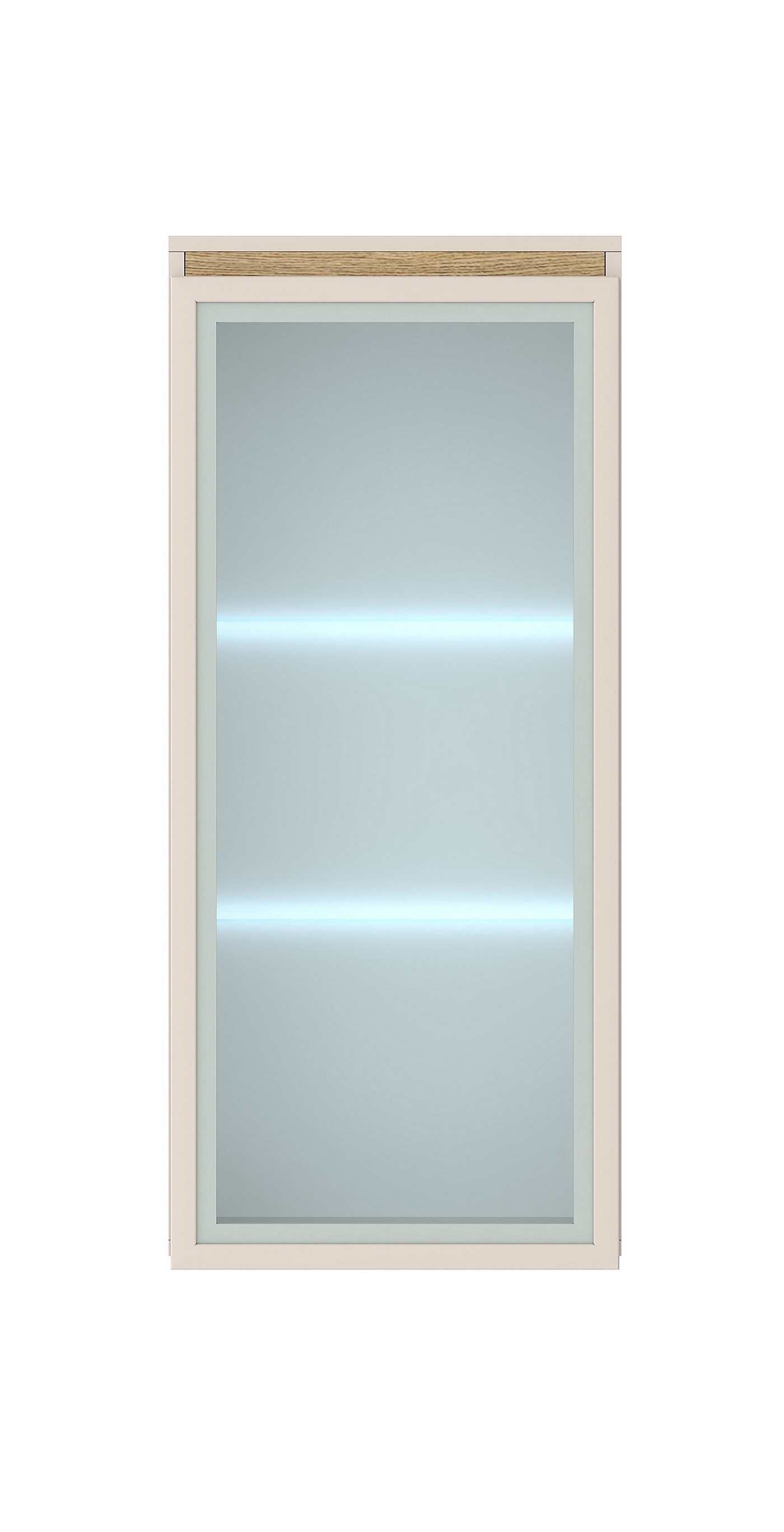 Пенал навесной 1В «ГРЕТТА» 1-створчатый со стеклополками. Фасад-витрина выполнен из профиля MDF. Опционально возможна установка светодиодной подсветки стеклополок.