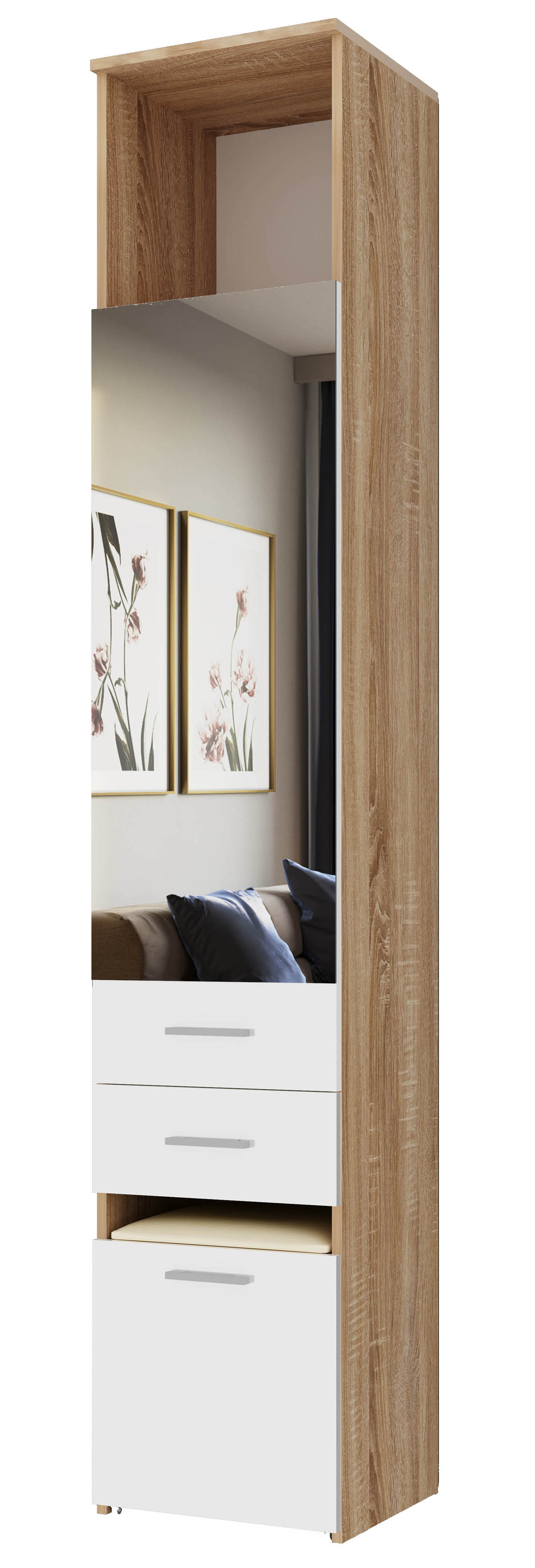 Пенал с пуфом и зеркалом "ИТАЛИЯ" П1Я-400 Дуб Сонома - Белый глянец