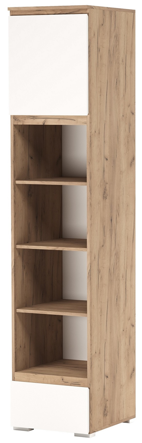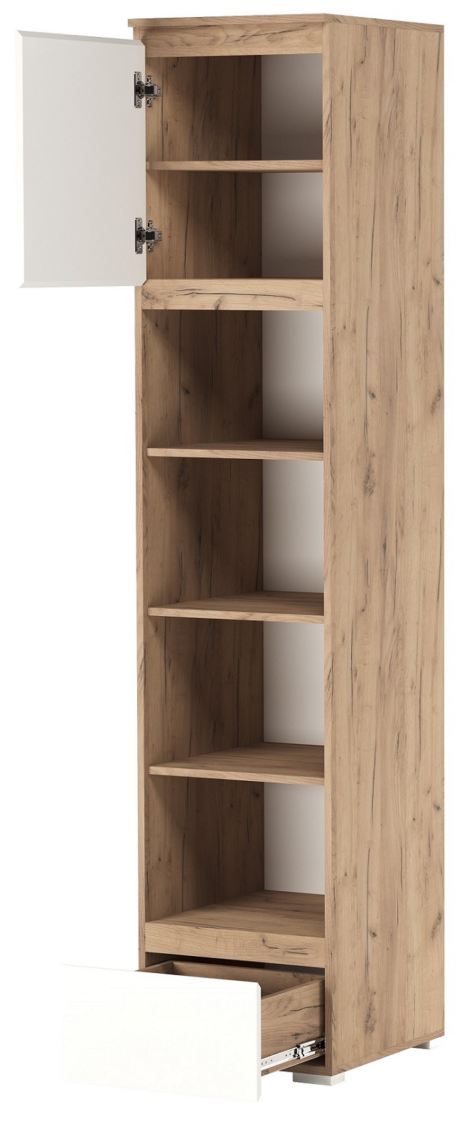 Пенал с ящиком 1С1Я «ГРЕТТА» одностворчатый с полками, с ящиком на направляющих полного выдвижения. Применение интегрированной ручки на фасадах делает модель стильной и безопасной – дверцы открываются за профилированные выступы. Фасады обработаны кромкой 1 мм. Регулируемые ножки-опоры чёрного цвета.