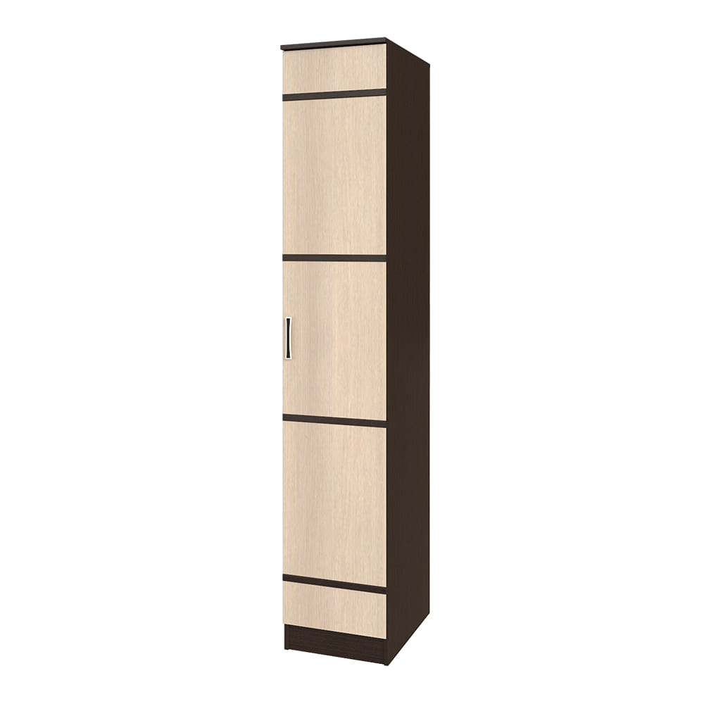 Модель из классического сочетания двух цветов ЛДСП венге и лоредо с лёгкостью впишется в современный интерьер. Внутреннее наполнение изделия представляет собой пять вместительных полок, на которых можно разместить предметы гардероба или постельные принадлежности. Кроме того, в комплект входит продольная штанга, поэтому пенал Сакура станет отличным дополнением композции мебели для прихожей (в этом случае полки не устанавливаются).