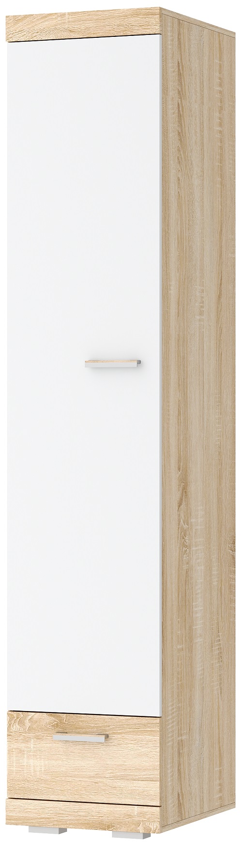 Шкаф «СОНАТА» ШС-450 одностворчатый с 4-мя полками и ящиком на направляющих полного выдвижения. Верхняя и нижняя части шкафа обрамлёны профилем MDF.