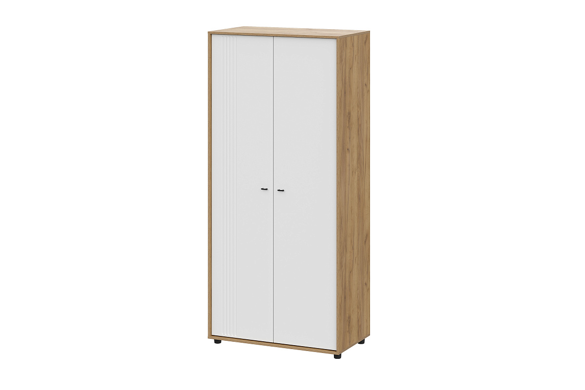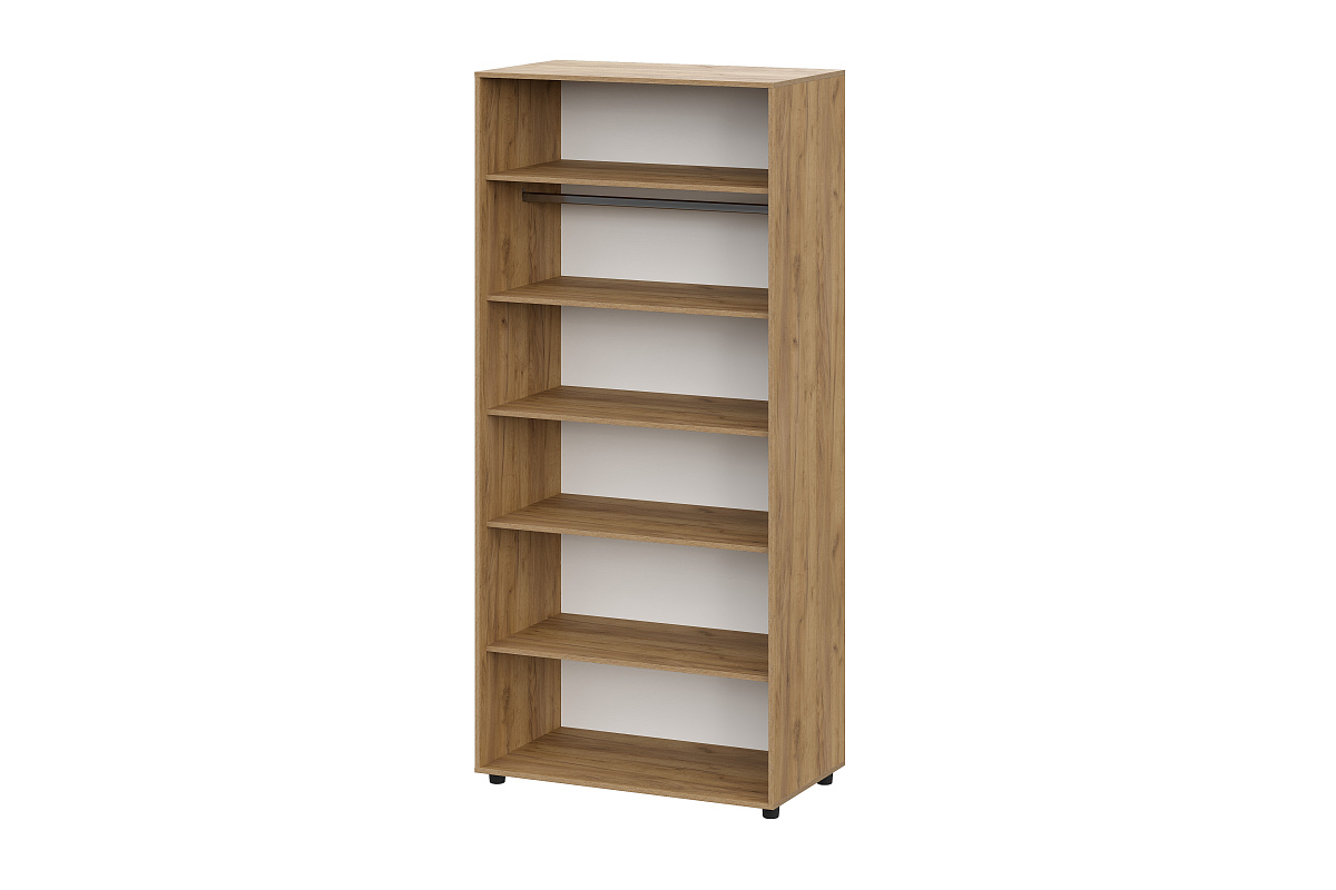 В шкафу сверху одна вязка, под ней штанга металлическая, ниже четыре съемные полки (идут в комплекте). Максимальная нагрузка на полку - 5кг.