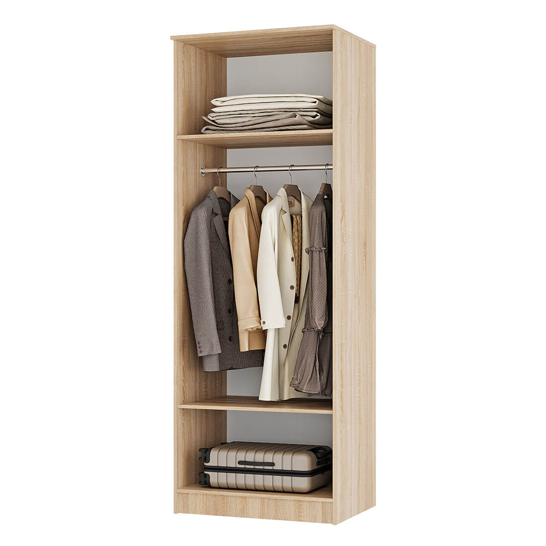 Шкаф «Сакура» может использоваться самостоятельно или в комбинации с другими модулями из одноименной мебельной серии. Вы сами будете регулировать внутреннее наполнение шкафа: использовать только полки, а возможно совместить их со штангой для вешалок. Распашные дверцы выполнены из ЛДСП, комплект зеркал приобретается отдельно.