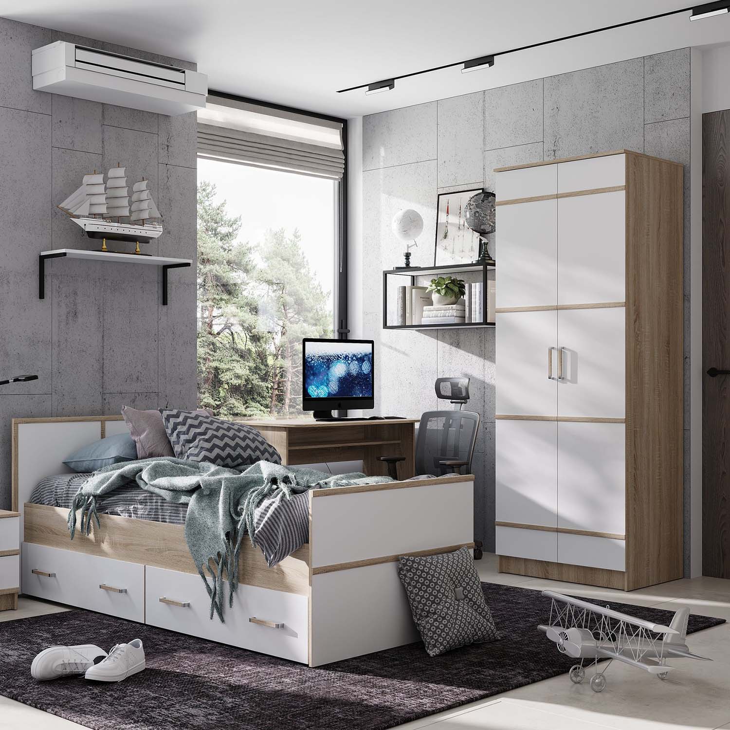 Спальня Сакура композиция №4 сонома/белый