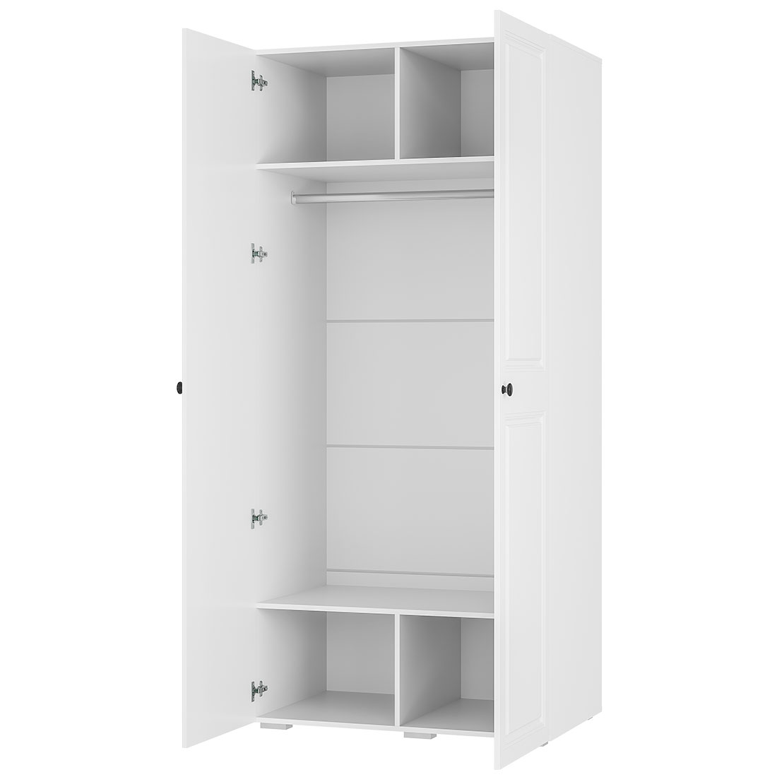 Двухстворчатый шкаф «Софт» ШК-02 – вместительная модель, которая оснащена необходимыми зонами для хранения - просторным отделением с продольной хромированной штангой под вешалки для одежды и четырьмя полками для хранения различных вещей. Данная модель идет в комплекте со штангой. По желанию Вы можете заменить штангу полками ПЛ-23. Полки приобретаются отдельно.