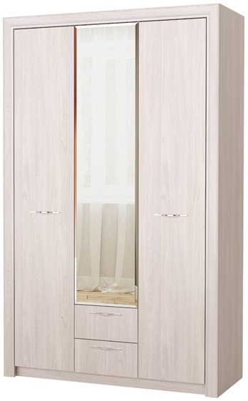 Шкаф 3С2Я «Октава» 3-створчатый с зеркалом и ящиками, с полками для белья и поперечной металлической штангой для верхней одежды. Устанавливается стильная металлическая ручка, декор «тёмный никель». Периметр шкафа обрамлён профилем MDF оригинальной формы с патиной (окраской фасок) серебристого цвета. Направляющие шариковые, полного выдвижения. Зеркало выполнено с изящной и красивой обработкой «фацет» по периметру.