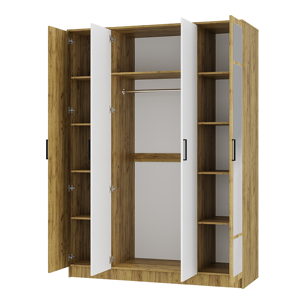 Вместительный и эстетичный 4-х створчатый шкаф «Евро» подойдет для хранения большого гардероба. Благодаря разнообразным системам хранения вы сможете без труда разместить в нем вещи для всех сезонов. Удобная фурнитура с лаконичным дизайном сделает повседневное использование шкафа приятным и удобным.