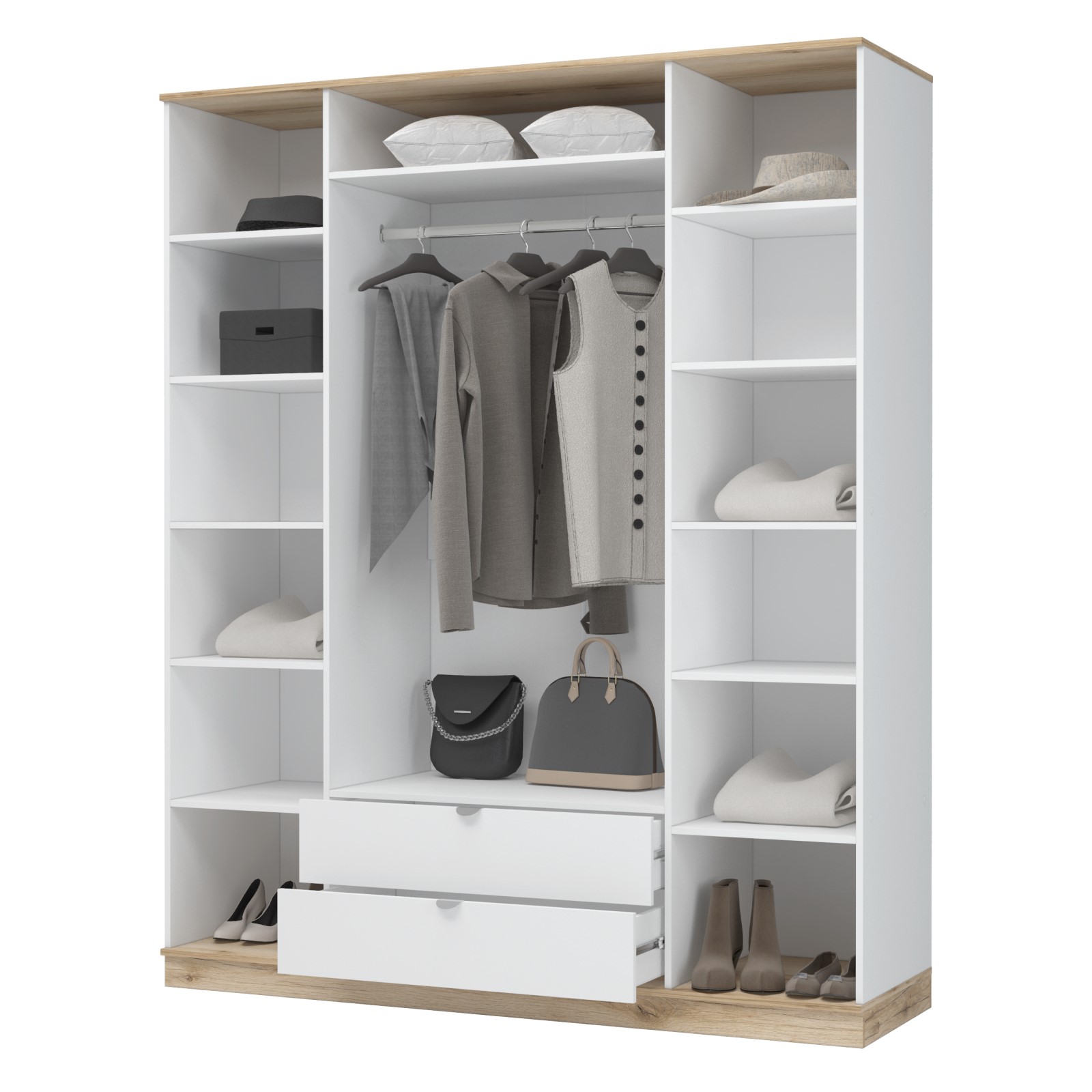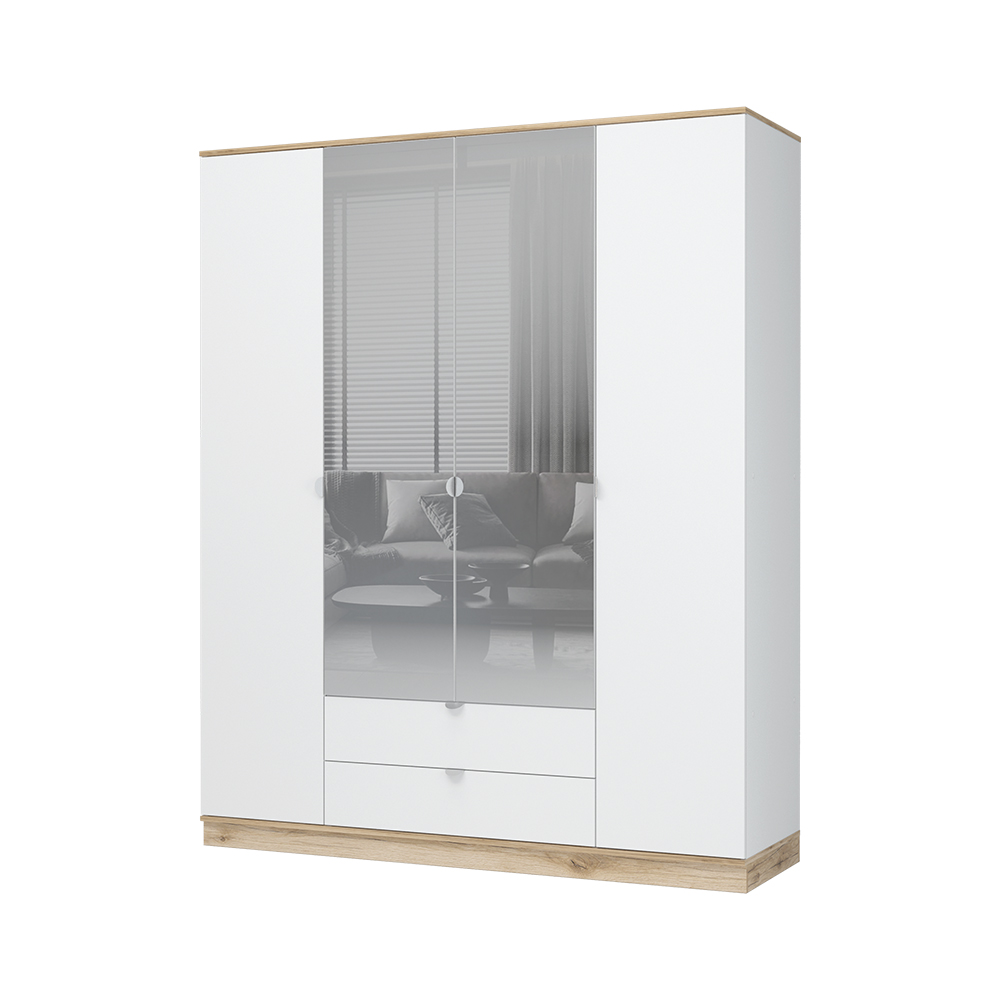 Шкаф 3х створчатый с зеркалом ЮККИ ШК 1Я 1350 БЕЛЫЙ/ДУБ ДЕЛАНО