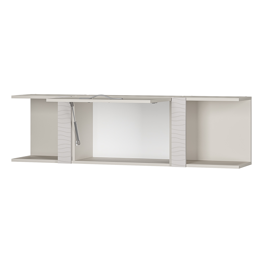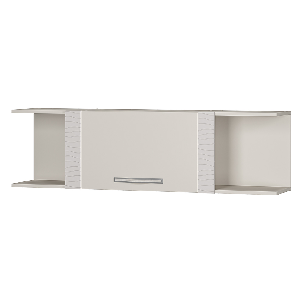 Навесная полка «Монако» – практичный и стильный предмет интерьера, который дополнит любую комнату вашего дома. Изделие изготовлено из ЛДСП приятного цвета «кашемир», фасады имеют декоративные вставки из МДФ. В открытых зонах вы можете разместить сувениры и предметы декора, а за распашной дверцей можно расположить вещи, которые должны быть скрыты.