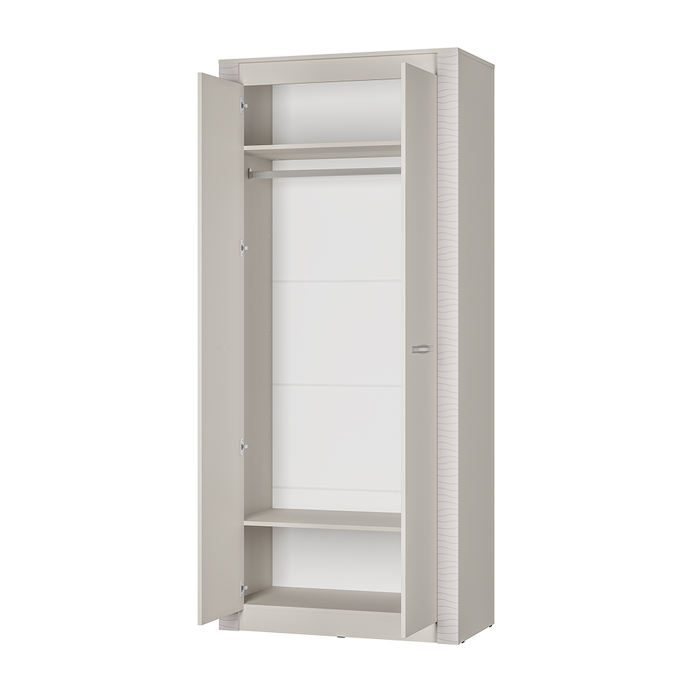 Двухстворчатый шкаф «Монако» относится к одноименной модульной серии. Модель не имеет вычурного декора и лишних деталей, выполнена в сдержанном и лаконичном стиле. Комплектация шкафа представляет собой ниши для хранения вещей в сложенном виде, а также отделение с хромированной штангой для одежды на вешалках. Для создания модели используется качественная ЛДСП цвета «кашемир». Створки дополнены изящными ручками. Дополнительно можно приобрести полки ПЛ-10.