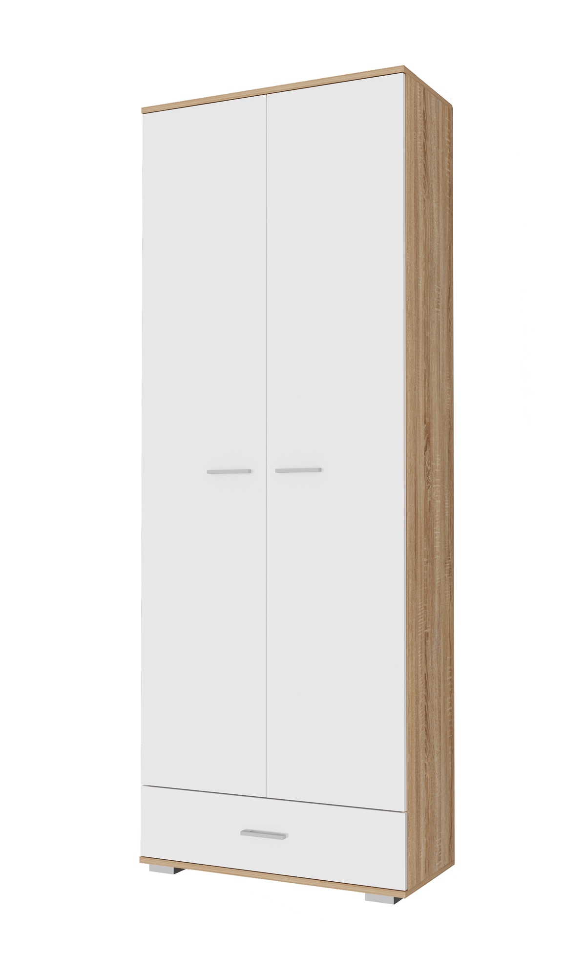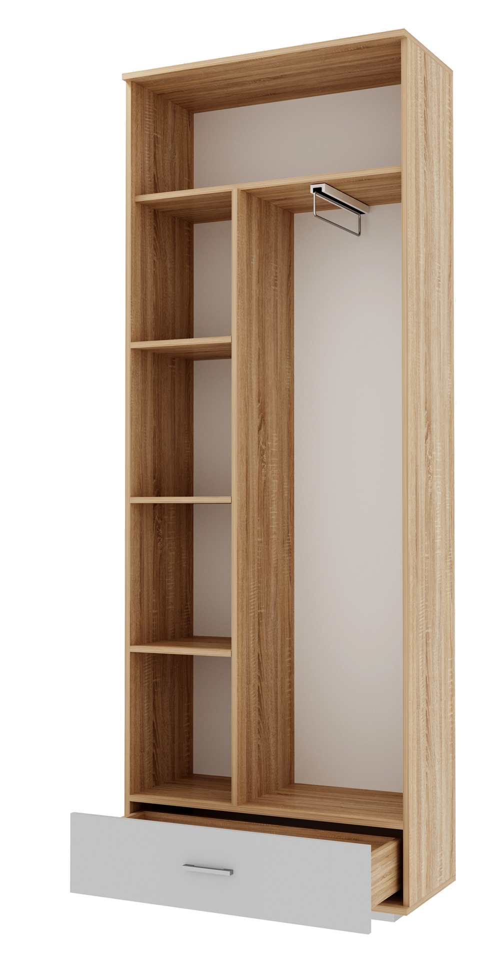 Шкаф «ИТАЛИЯ» ШК1Я-800 двустворчатый с ящиком на роликовых направляющих, с полками и выдвижной штангой для верхней одежды.