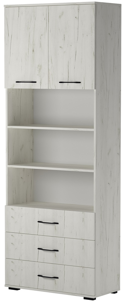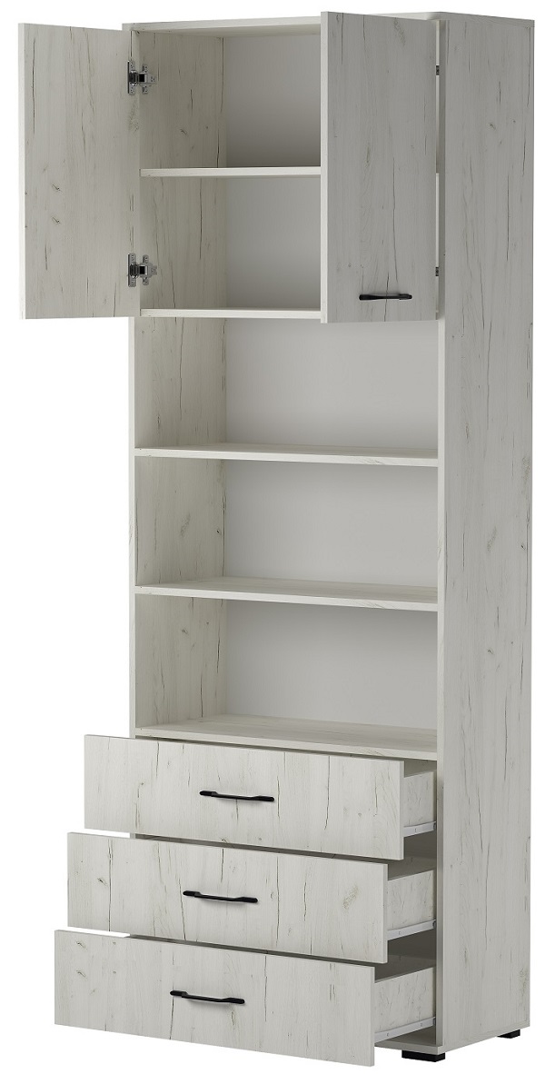 Шкаф «ИТАЛИЯ» ШК3Я-800 двустворчатый с 3-мя ящиками на роликовых направляющих, с полками. Устанавливается стильная металлическая ручка, чёрная, матовая.