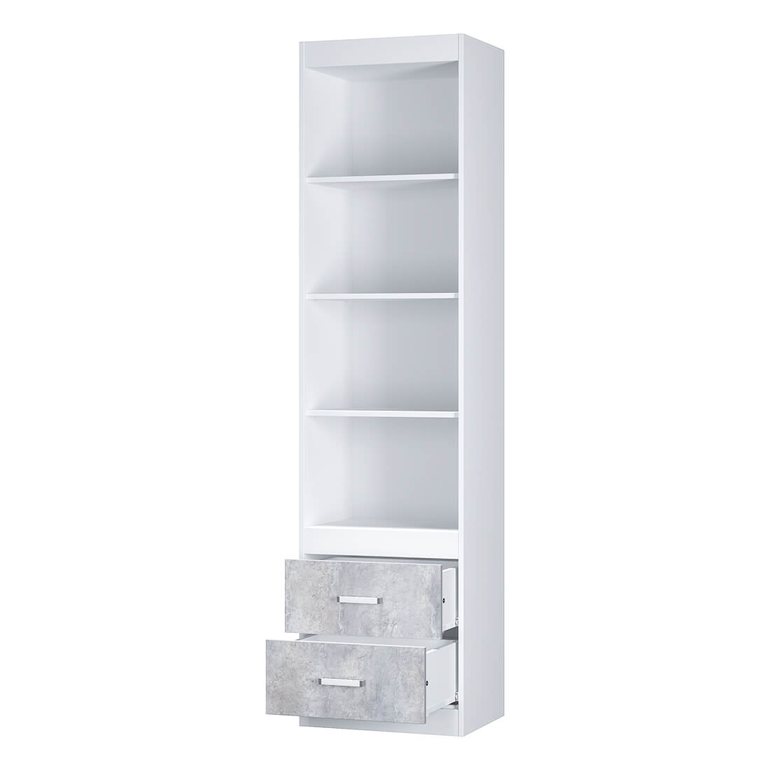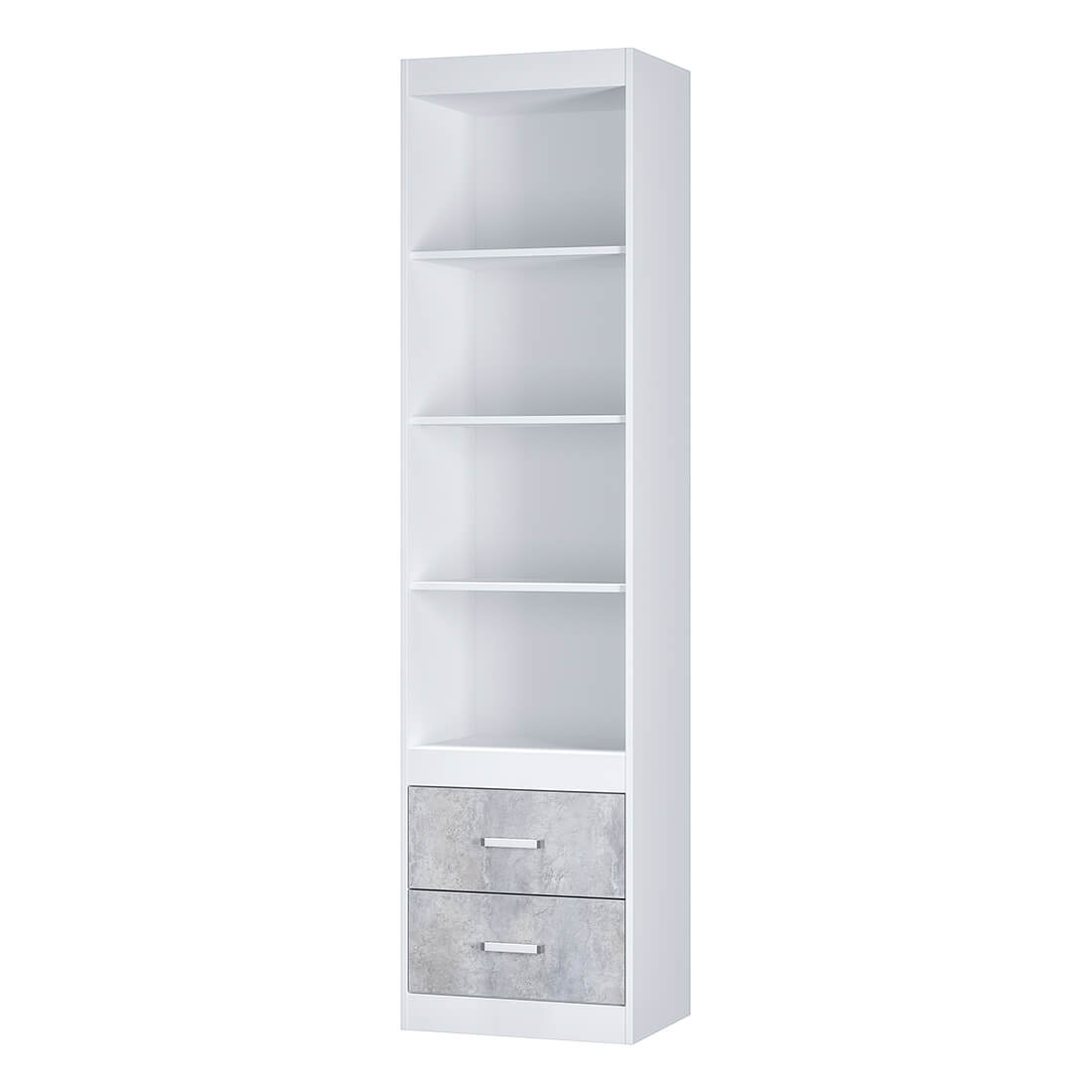 Модель открытого шкафа «Паскаль» состоит из нескольких открытых полок и двух закрытых ящиков. изделие изготовлено из высококачественной ЛДСП в комбинации двух светлых цветов «белый» и «цемент светлый», шкаф можно использовать для хранения книг, игрушек, канцелярских принадлежностей или же вещей.