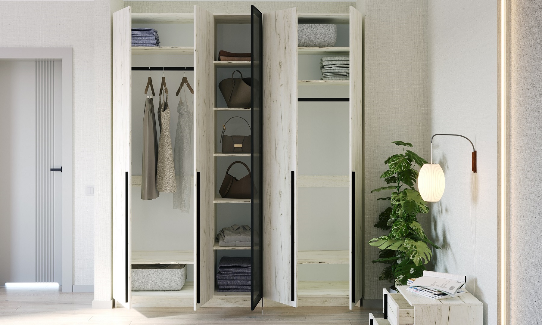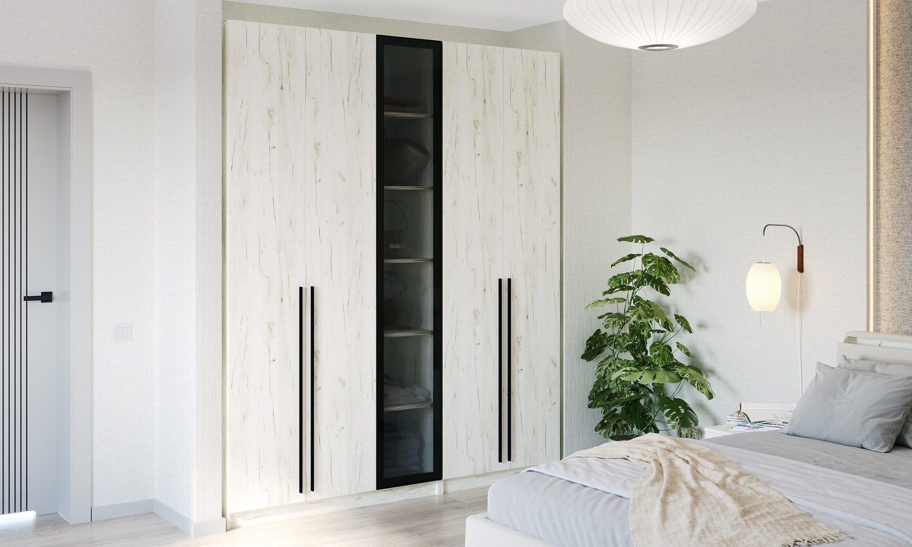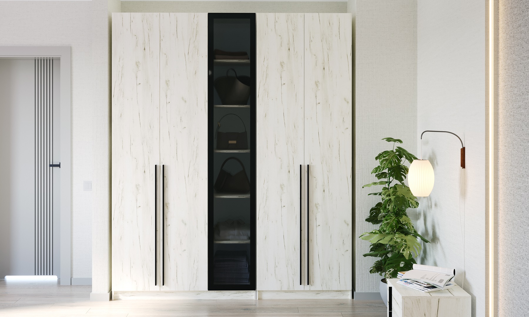 Шкаф 4С h 2400 "ЭЛЬТОН" с фасадами "ГРАФИТ" Дуб Крафт белый