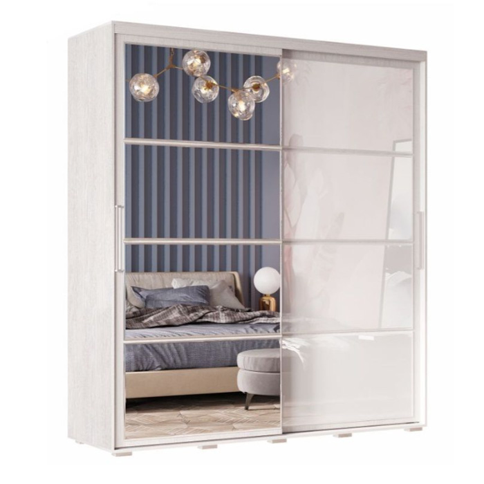 Практичный и многофункциональный шкаф-купе «Крафт-6» подойдет для любой комнаты вашей квартиры или дома. Модель изготовлена из ЛДСП, одна раздвижная створка выполнена из темного стекла, а вторая – зеркальная, такой прием облегчает конструкцию и позволяет расширить пространство. Внутри модель состоит из многочисленных полок и ящиков для белья и одежды, а также отделения со штангой для плечиков.