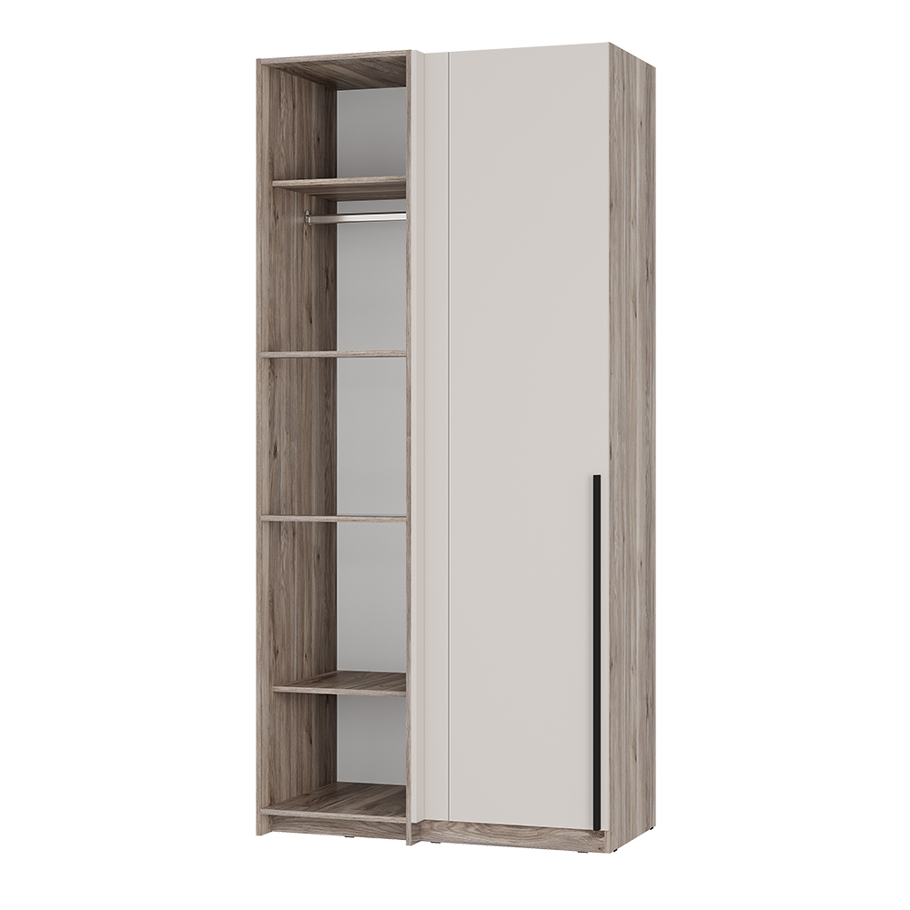 Угловой шкаф «Урбан» состоит из отделения с хромированной штангой для плечиков, а также верхние и нижние ниши.