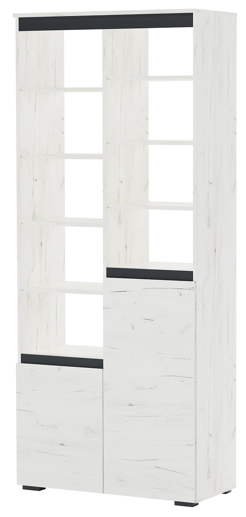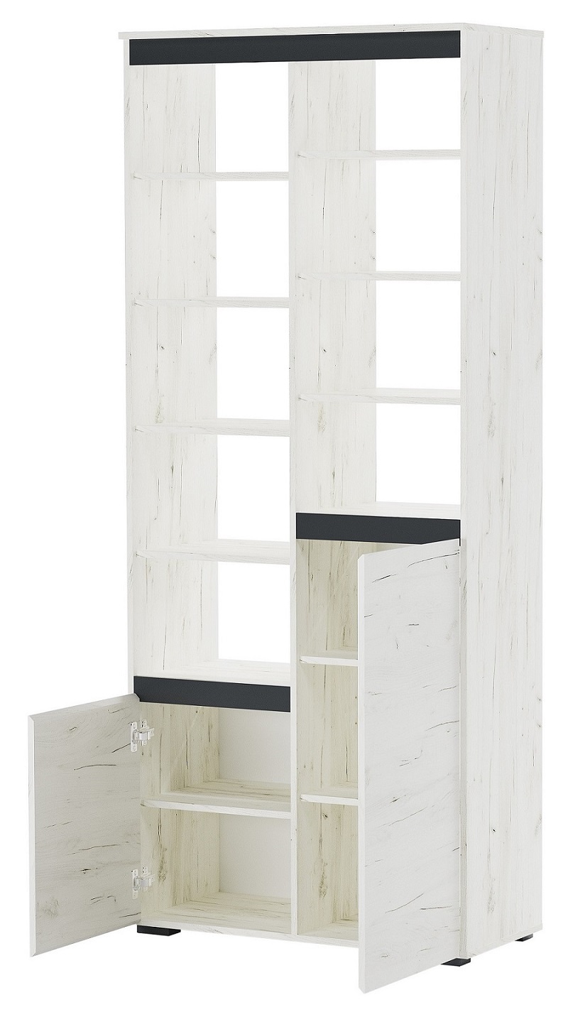Шкаф 2С2Я с полками "ГРЕТТА" Дуб Крафт белый - Антрацит