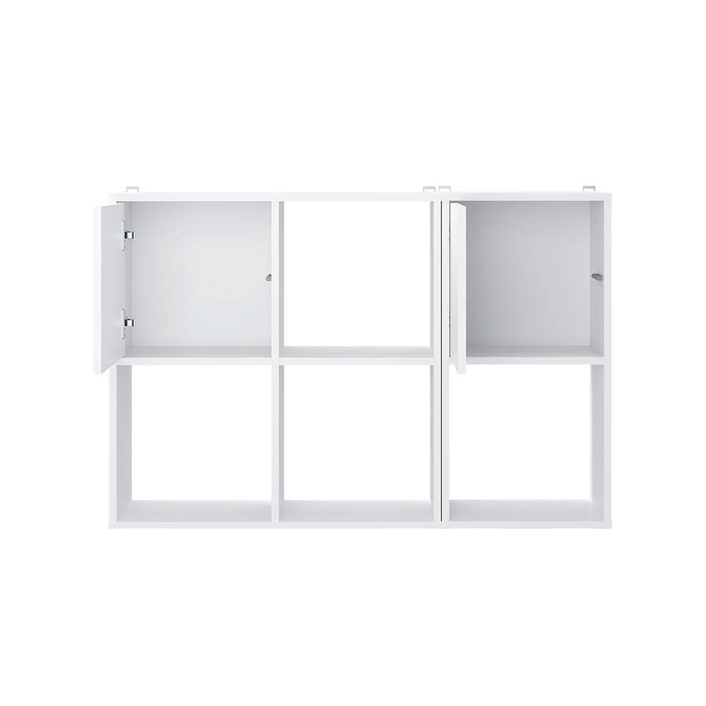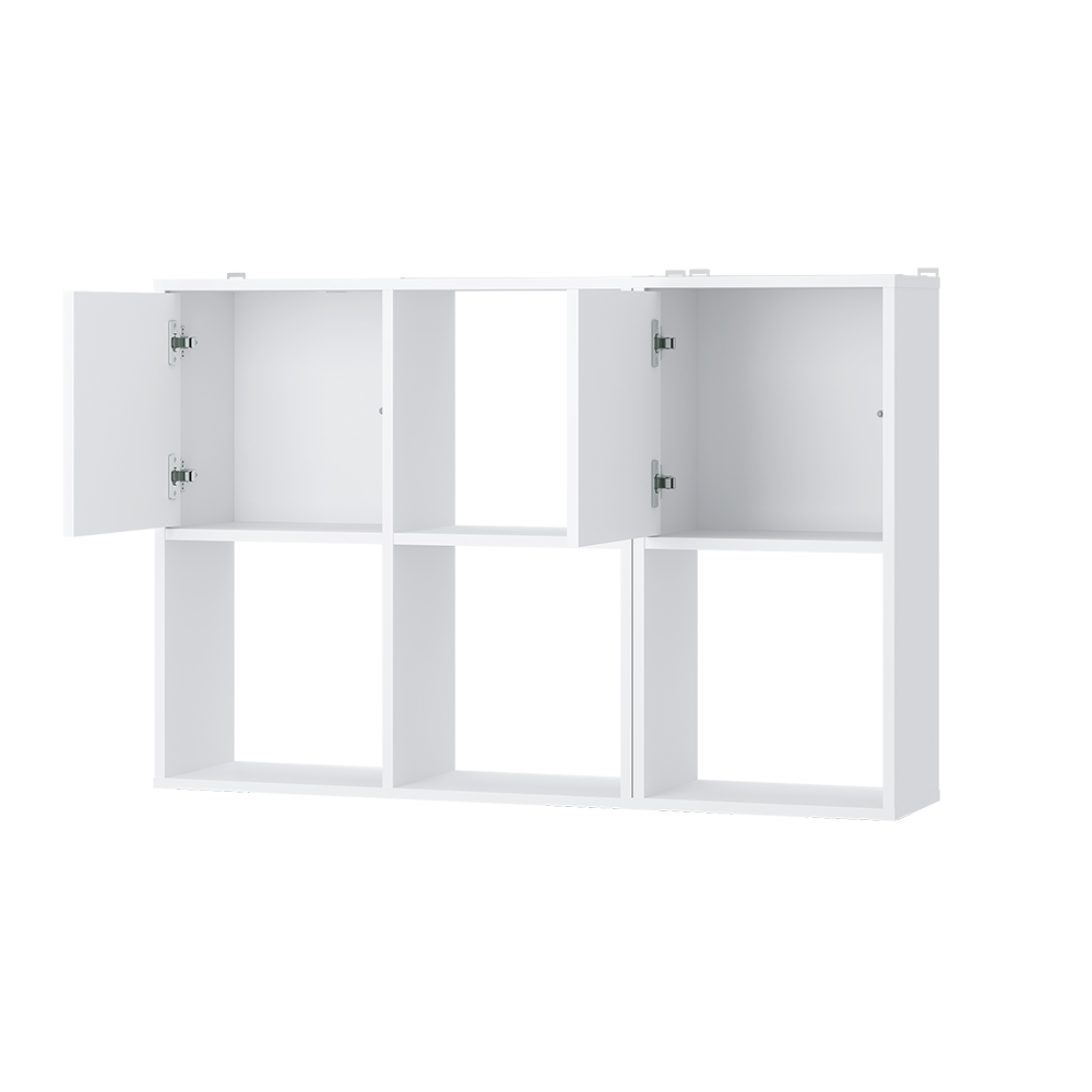 Стеллаж-полка «Берг» выполнена в белом цвете, что создает единый стиль и гармоничное оформление рабочего пространства. Изделие сочетает в себе открытые и закрытые отделения разного размера, обеспечивая удобное хранение книг, документов и декоративных элементов.