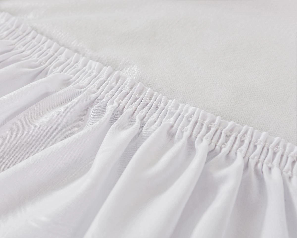 Он защищает не только поверхность, но и бока матраса. Верхняя часть наматрасника изготовлена из махровой ткани на основе водонепроницаемой мембраны. Поэтому поверхность матраса защищена от загрязнений, потертостей и протеканий. Боковая часть чехла изготовлена из микрофибры, этот материал приятен на ощупь и препятствует скольжению постельного белья. Крепление – резинка по периметру борта.