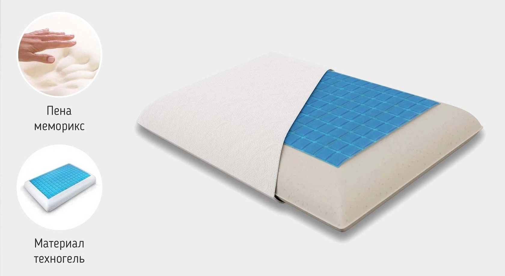 Наполнитель - пена с памятью формы Memorix и техногель. Материал с пористой структурой, мягкий и упругий, при нагревании теплом тела человека становится более эластичным, принимает форму, точно соответствующую очертаниям фигуры. Отдых на такой подушке дарит ощущение легкости и комфорта. Легкий охлаждающий эффект техногеля оказывает благотворное воздействие на организм, улучшая качество сна.