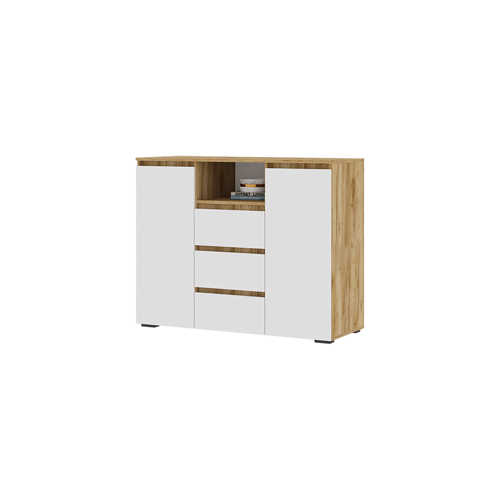 ХЕЛЕН ШК 05 Шкаф четырехстворчатый с ящиками БЕЛЫЙ/ДУБ КРАФТ ЗОЛОТО