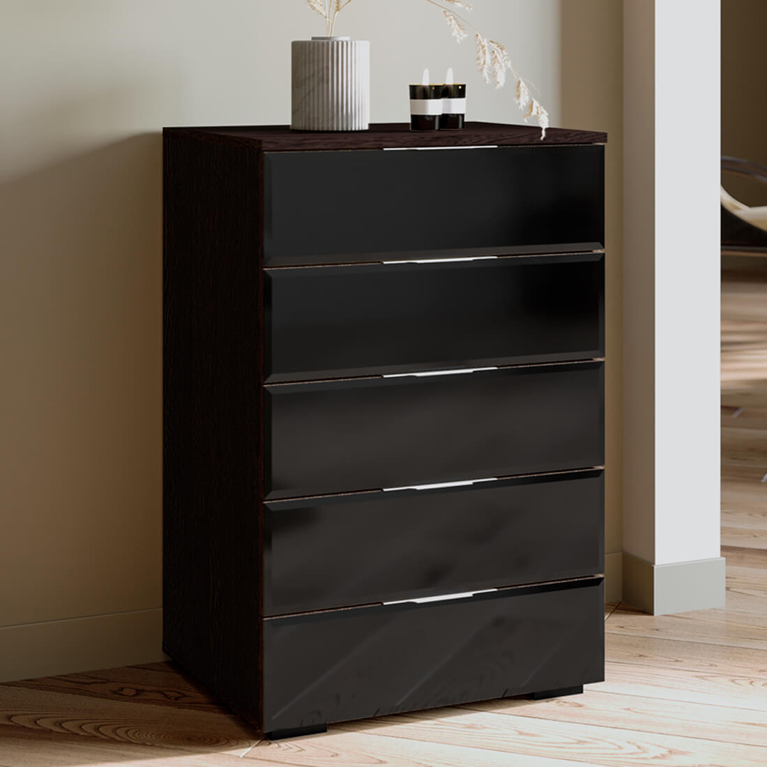 Комод «Алекса» - удобная система хранения для одежды, постельных принадлежностей или других хозяйственных аксессуаров, которая состоит из пяти вместительных выдвижных ящиков на шариковых направляющих, обеспечивающих лёгкую и бесшумную эксплуатацию модели.