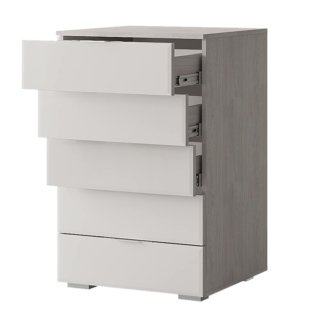 Комод «Алекса» - удобная система хранения для одежды, постельных принадлежностей или других хозяйственных аксессуаров, которая состоит из пяти вместительных выдвижных ящиков на шариковых направляющих, обеспечивающих лёгкую и бесшумную эксплуатацию модели.