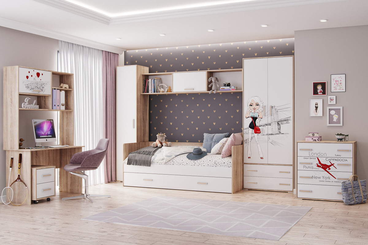 Пенал Бланка дуб сонома/белый с фотопечатью