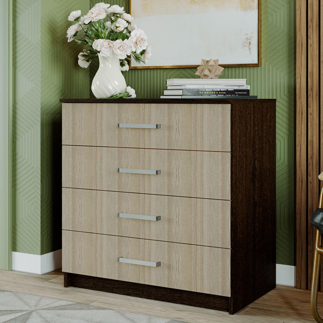 Модель комода «Фиеста» позволит разместить ваши любимые вещи благодаря четырем выдвижным ящикам. Изделие будет идеально смотреться в любом интерьере и любой комнате, ведь оно выполнено из ЛДСП классических цветов «венге» и «лоредо». Пользоваться комодом очень удобно за счет эргономичных ручек.