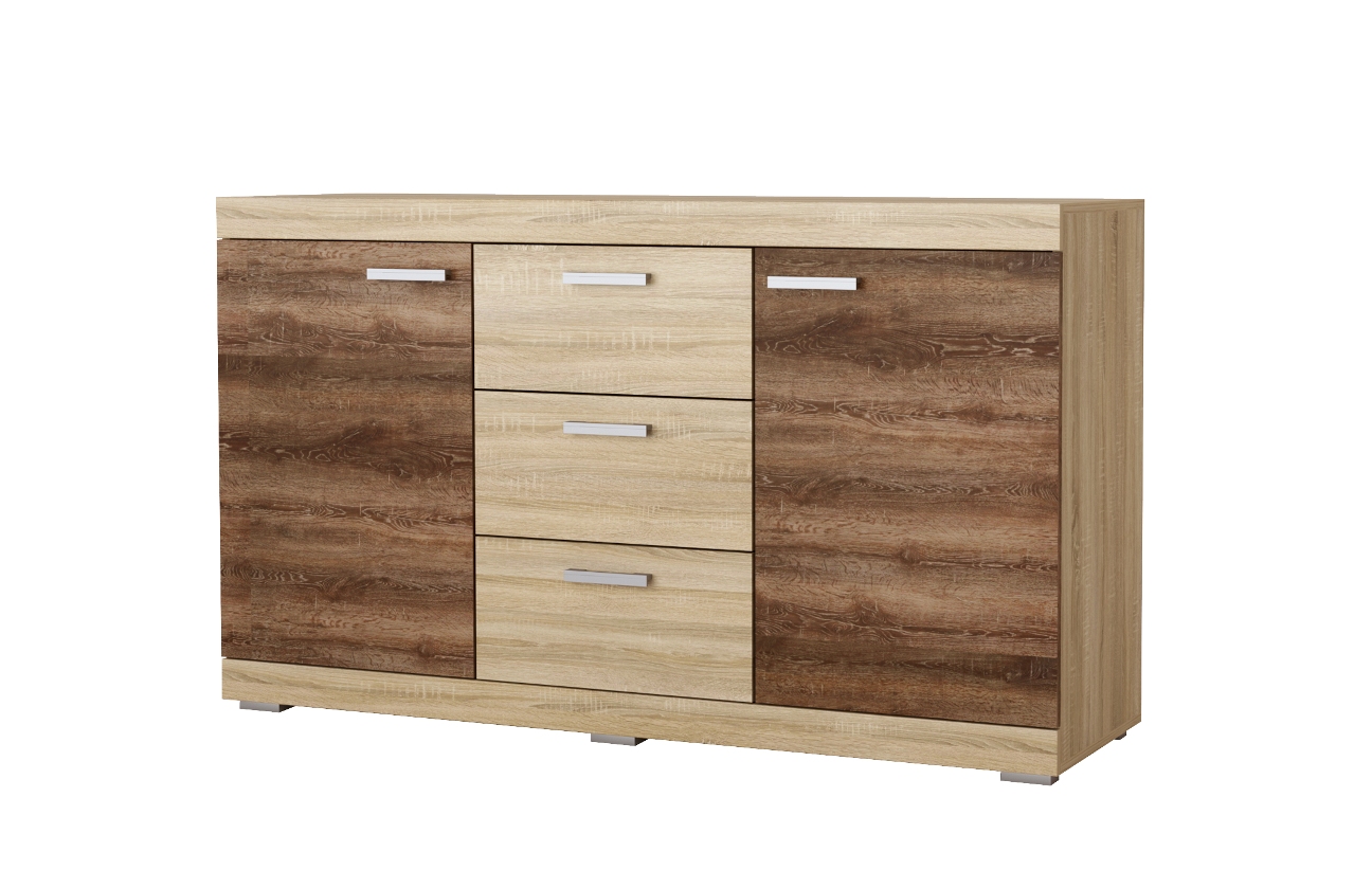 Комод КС-1500 «СОНАТА» 2-створчатый, с 3-мя ящиками на направляющих полного выдвижения. Нижняя и верхняя части комода обрамлёны профилем MDF.