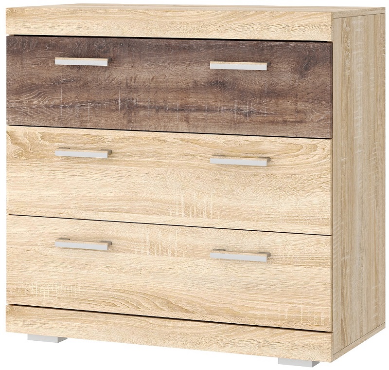 Комод КС-900 «СОНАТА» с 3-мя ящиками на направляющих полного выдвижения. Нижняя и верхняя части комода обрамлёны профилем MDF.
