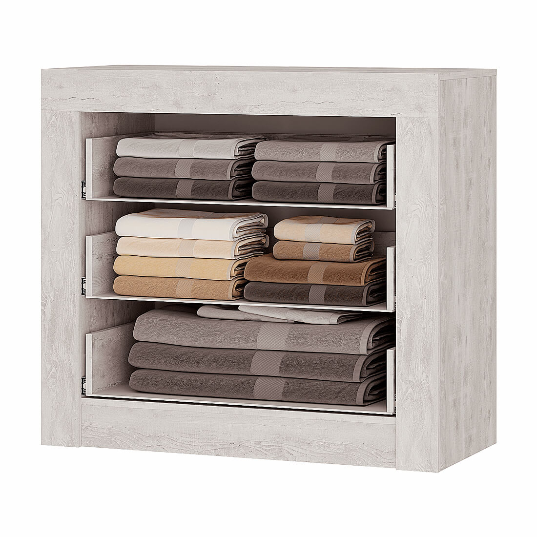Элегантный комод «Леонардо» можно использовать как отдельно, так и в коллекции спального гарнитура. Удобная система хранения для одежды, пастельных принадлежностей или других хозяйственных аксессуаров состоит из трёх вместительных выдвижных ящиков на шариковых направляющих, которые обеспечивают легкую и бесшумную эксплуатацию модели.
