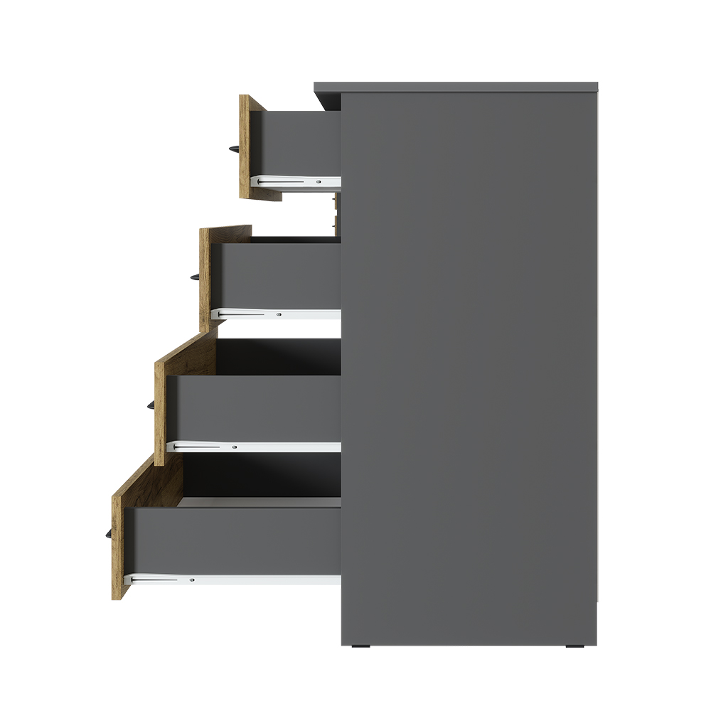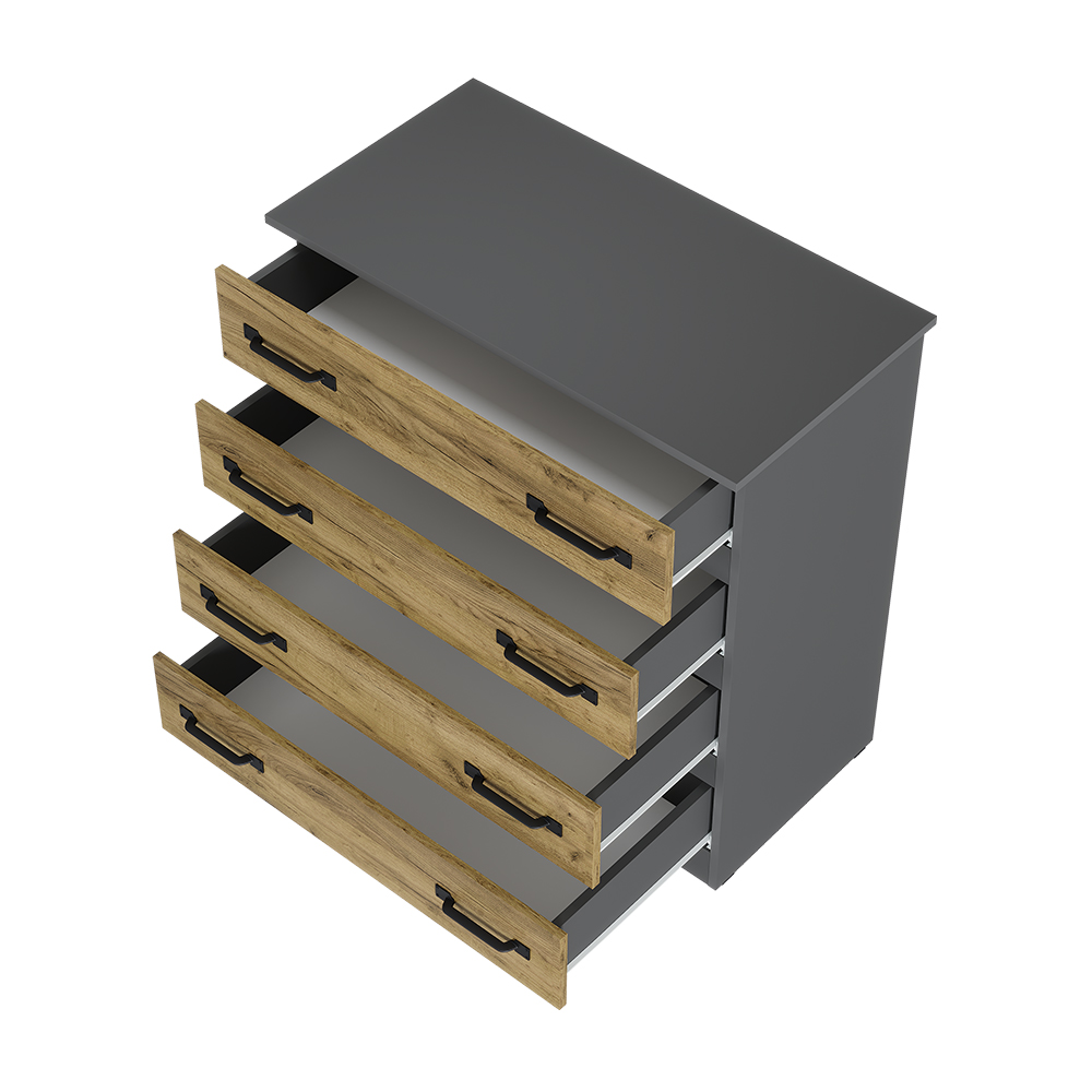Комод «Лофт» — вместительный комод с четырьмя вместительными ящиками — универсальное решение, которое подойдёт и для спальни, и для домашнего кабинета, и для гостиной. Данная модель идеально подходит для хранения белья, одежды, аксессуаров, важных документов, украшений и мелочей. Верхнюю крышку можно использовать как дополнительную полочку для лампы.