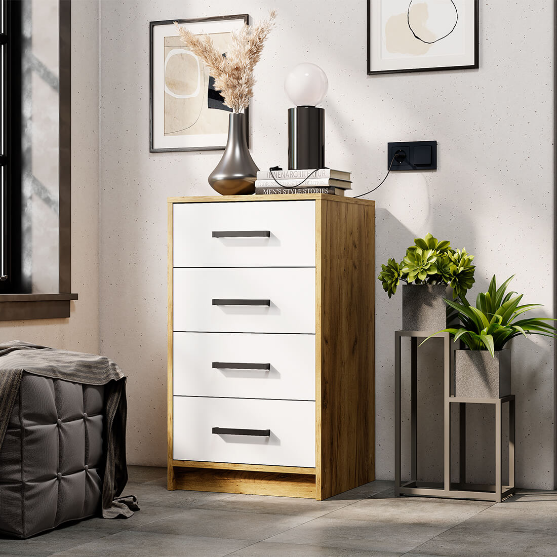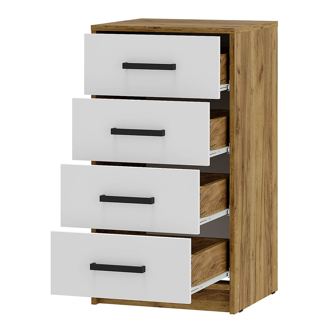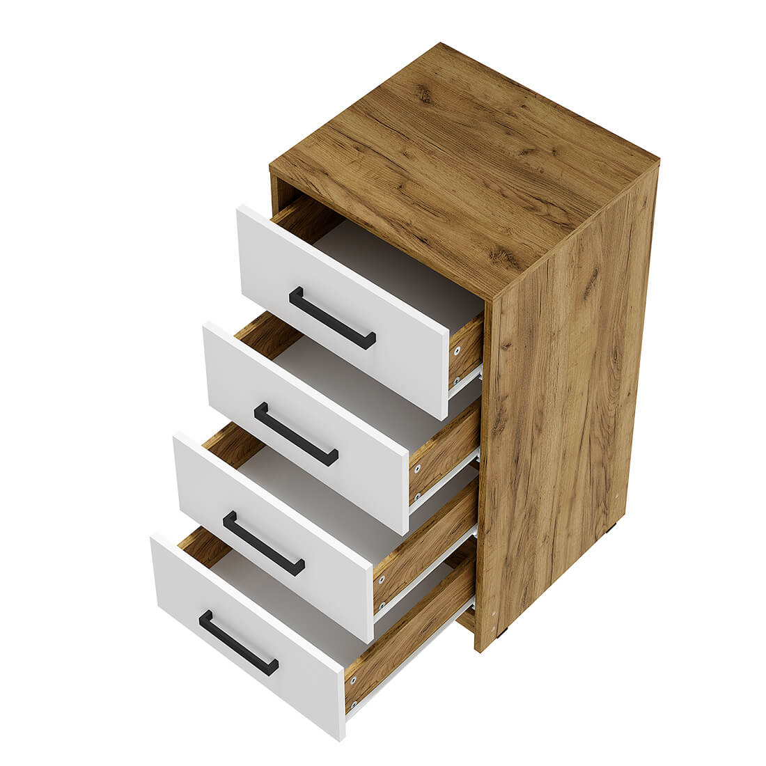Комод Мия КМ-02 - современный компактный комод с вместительной системой хранения, который станет ярким акцентом в интерьере Вашего дома. Вместительные глубокие ящики на роликовых направляющих обеспечивают легкую эксплуатацию.