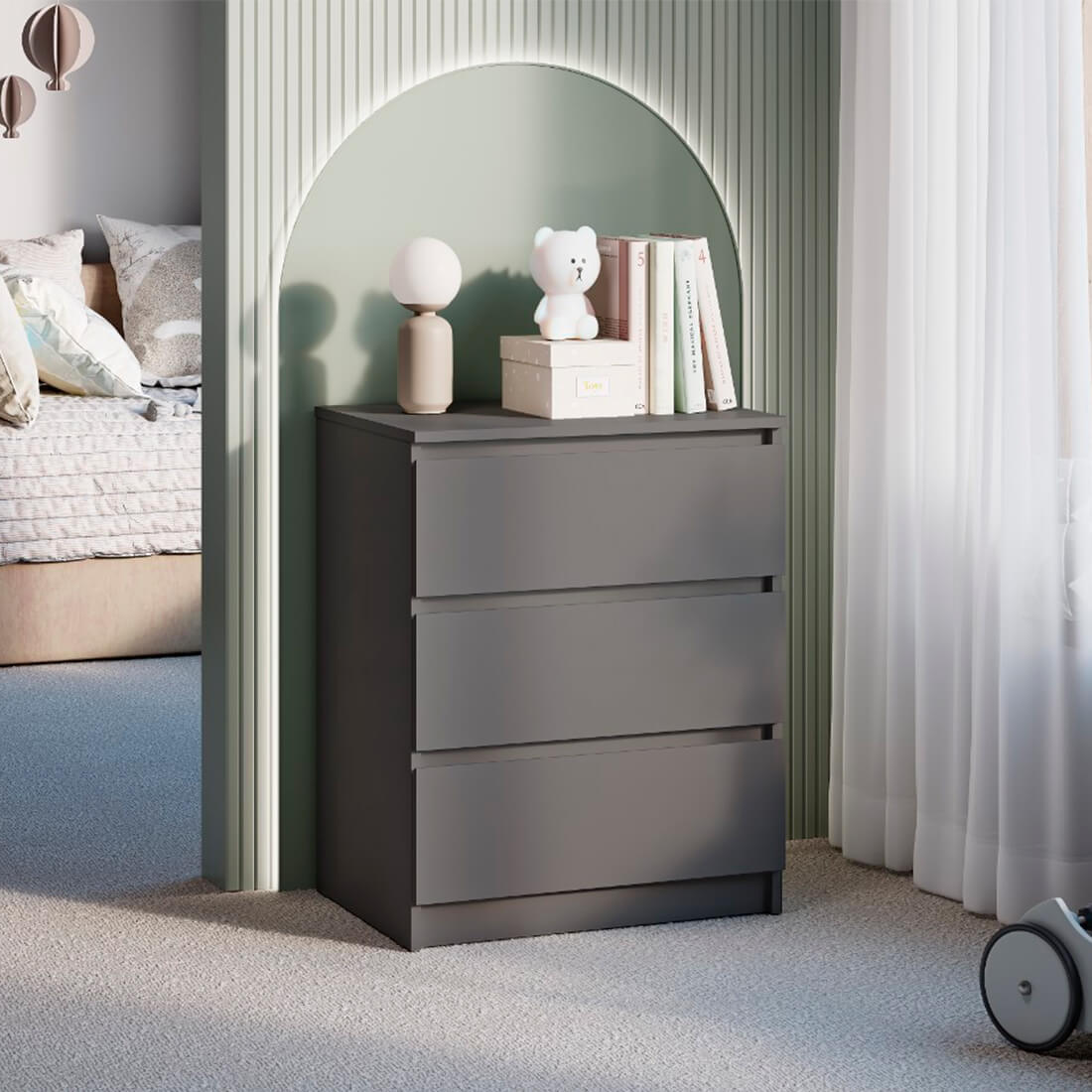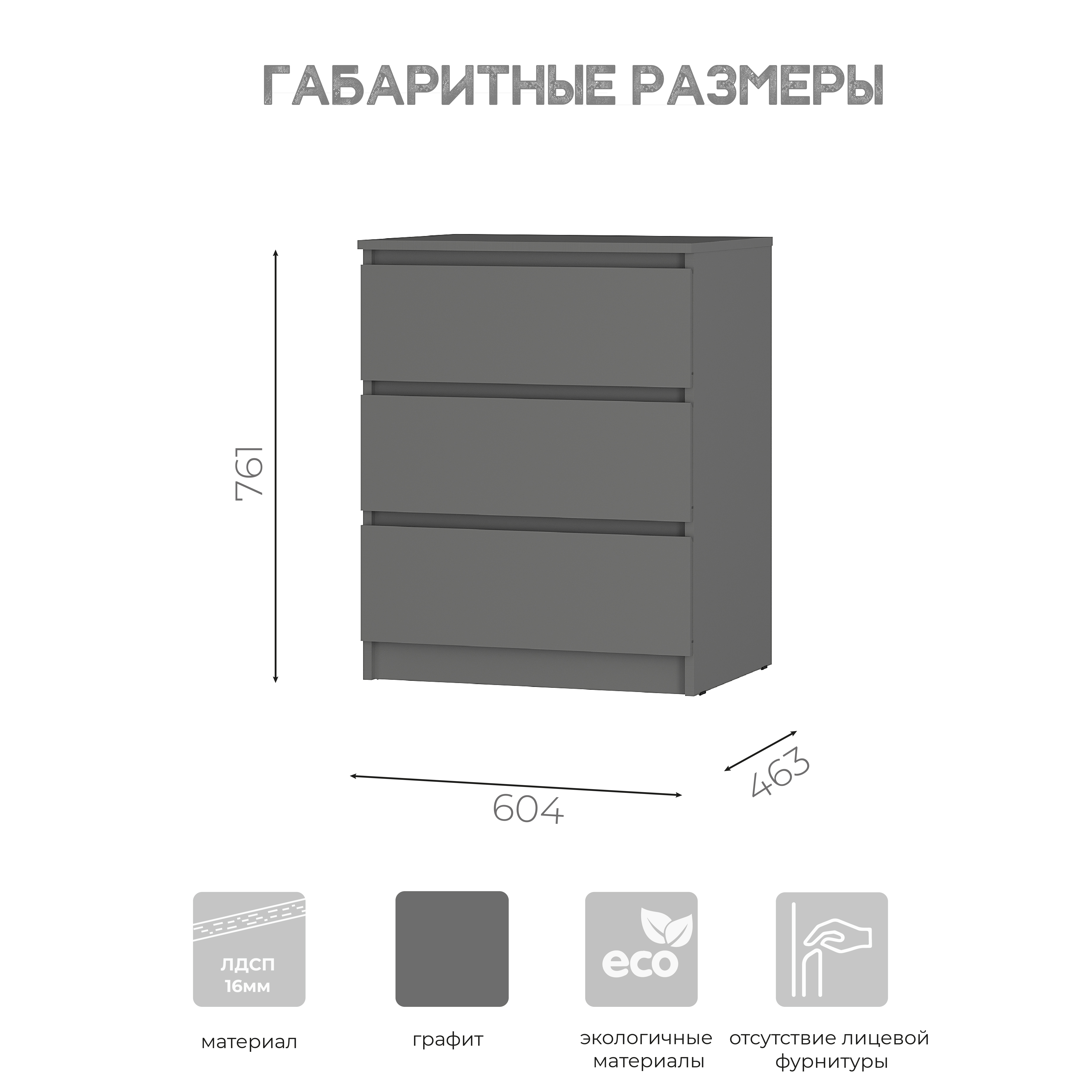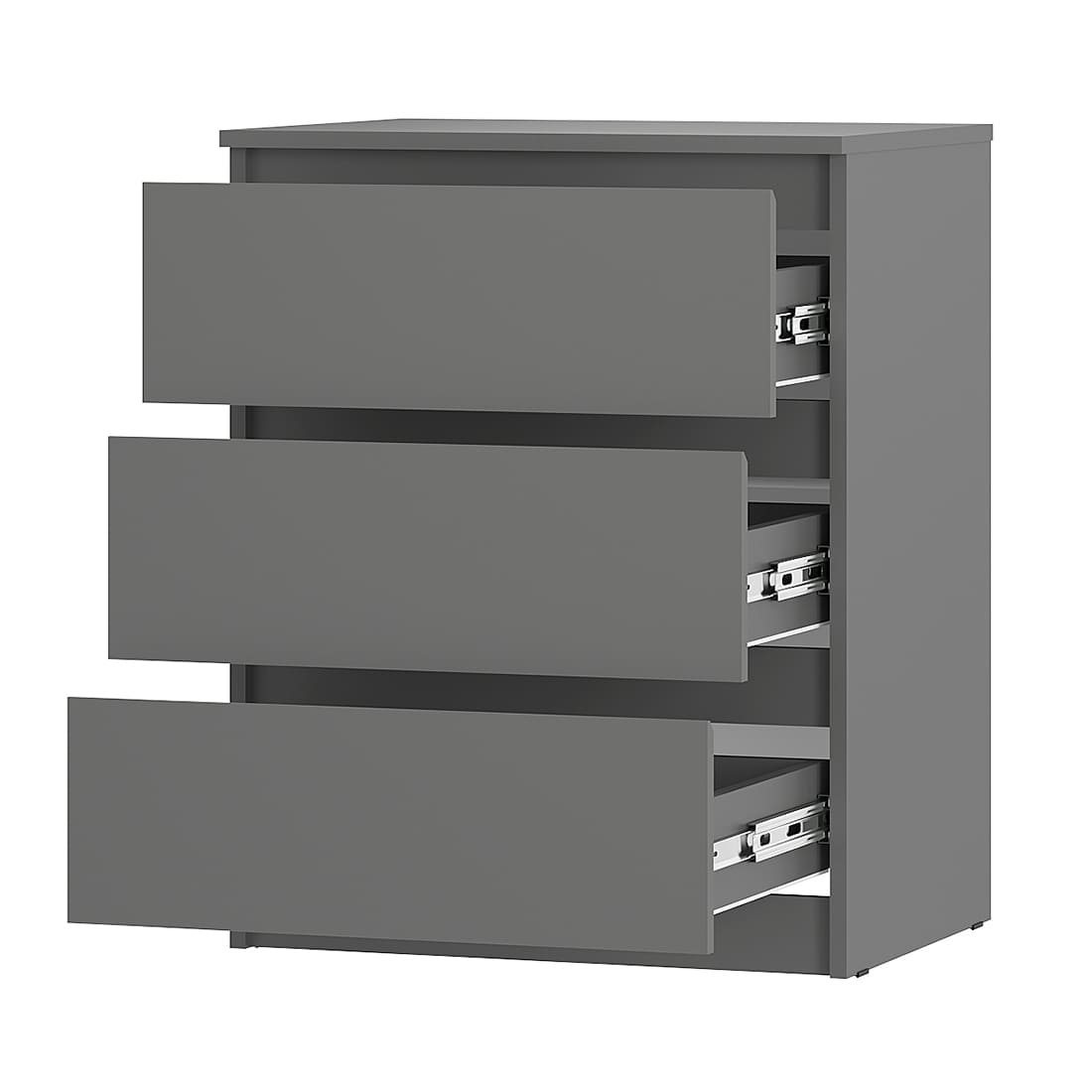 Комод «Симпл» (КМ-01) — компактный и вместительный комод с тремя выдвижными ящиками, которые открываются бесшумно за счет шариковых направляющих.