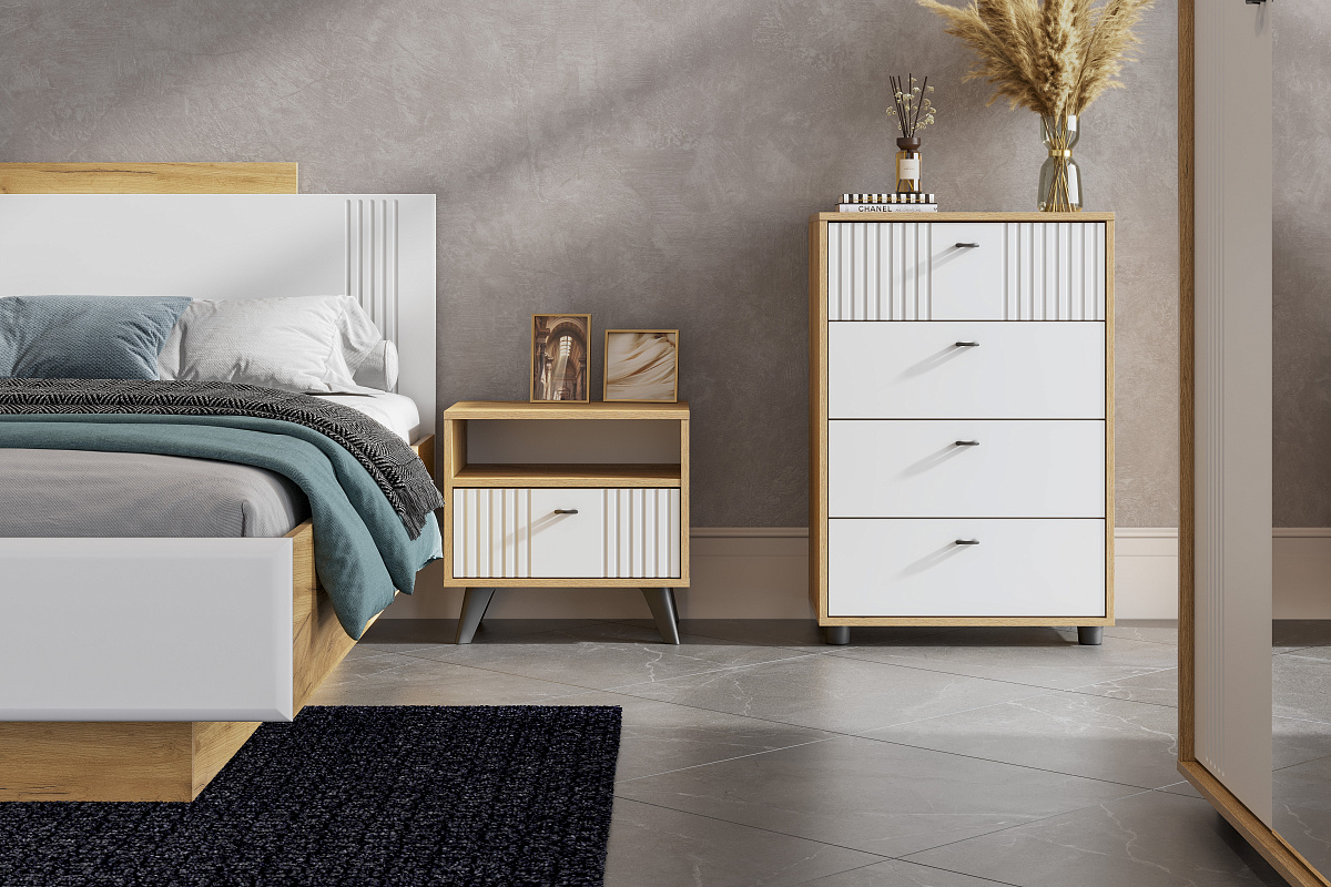Кровать (0,9*2,0) с ящиками МС "Милан" Дуб Золотой/Белый Матовый