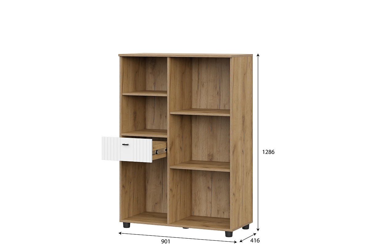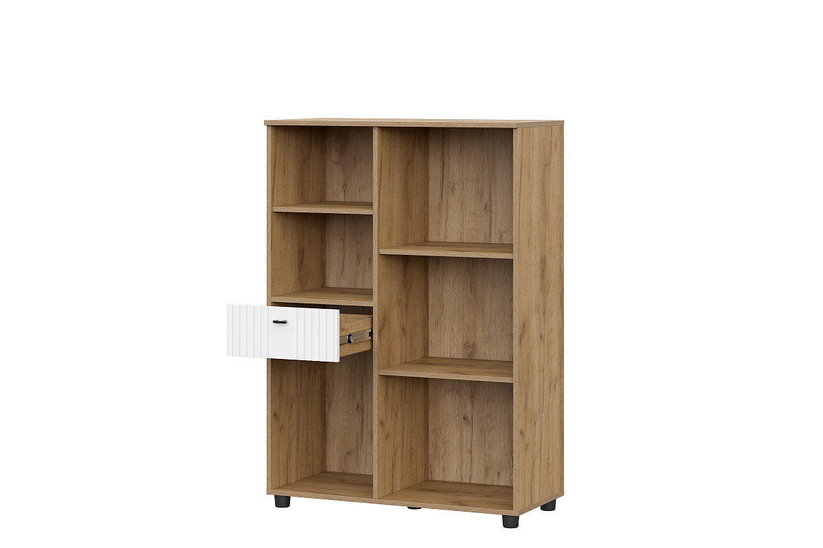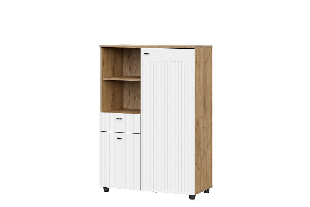 МС "Милан" Тумба для телевидеоаппаратуры с ящиками Дуб Золотой/Белый/Белый Матовый
