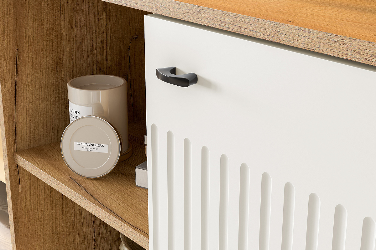 МС "Милан"Тумба телевидеоаппаратура со створками и нишей Дуб Золотой/Белый/Белый Матовый