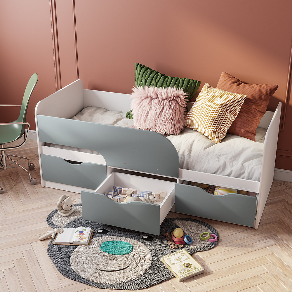 Кровать «Стандарт» с плавными линиями фасадов - эстетичный и безопасный выбор для детской комнаты. Благодаря компактным размерам она уместится в небольшой комнате, не создавая ощущения тесноты.