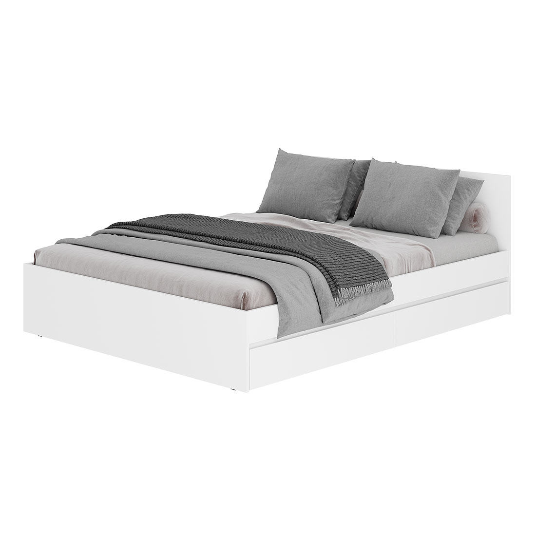 Основание для кровати приобретается отдельно, на выбор: настил ЛДСП с кромкой, реечный настил. Кровать оснащена выкатными ящиками, в которых легко размещается постельное белье, текстиль и другие вещи, которым не нашлось места в шкафу.