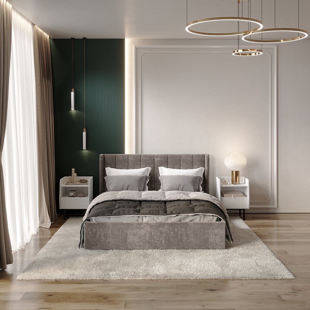 Основание для кровати приобретается отдельно, на выбор: ортопедическое основание с подъёмным механизмом 1,4 м, настил ЛДСП 1,4 м (1400x380 мм) с кромкой – 5 шт, проложки ДСП 1,4 м (1400x420мм) – 4 шт или реечный настил 1,4 м. Можно дополнительно укомплектовать опорами «Звезда» (комплект 4 шт) в золотом или черном цвете. Любое из этих оснований и опоры приобретаются отдельно.