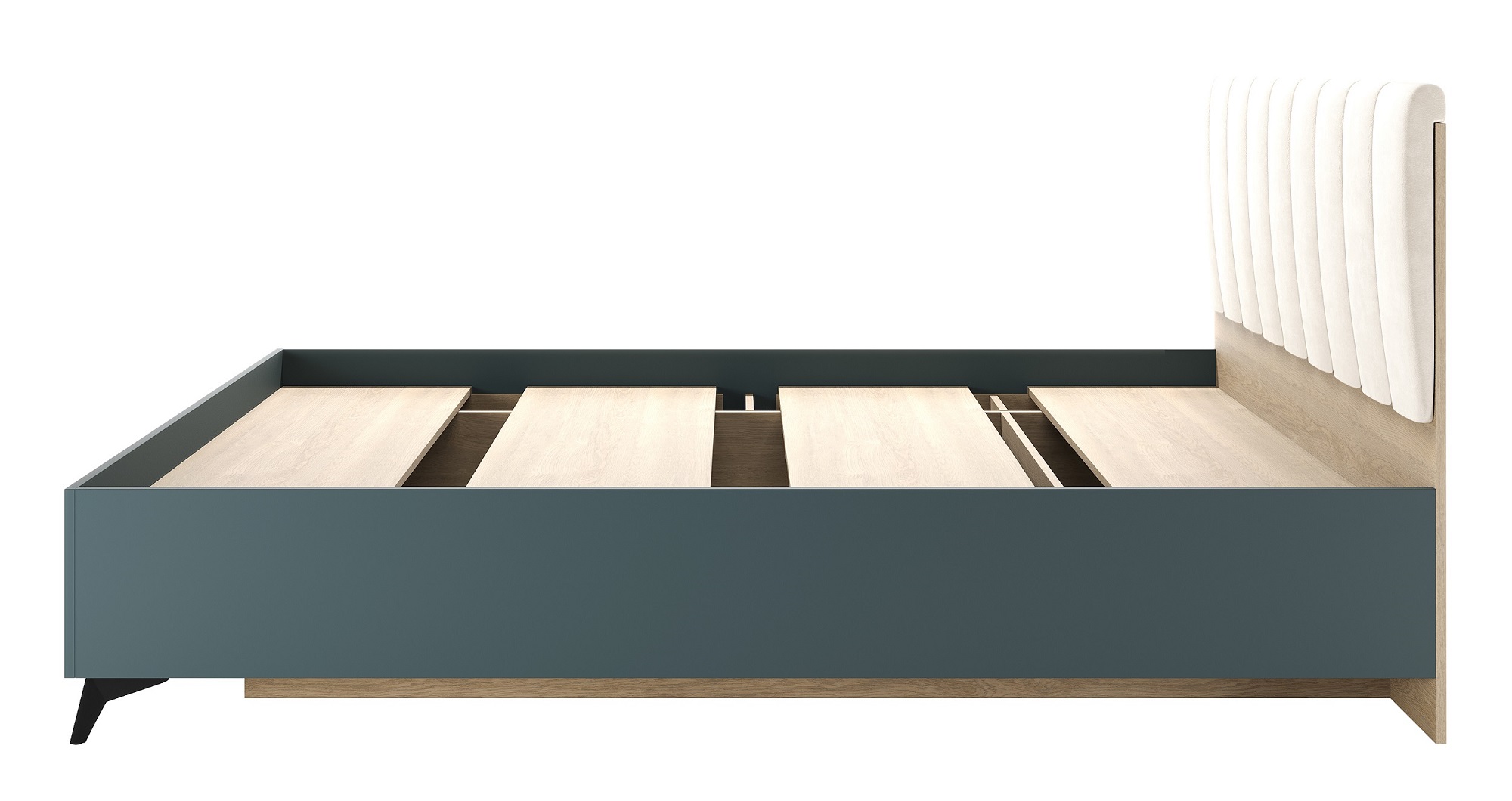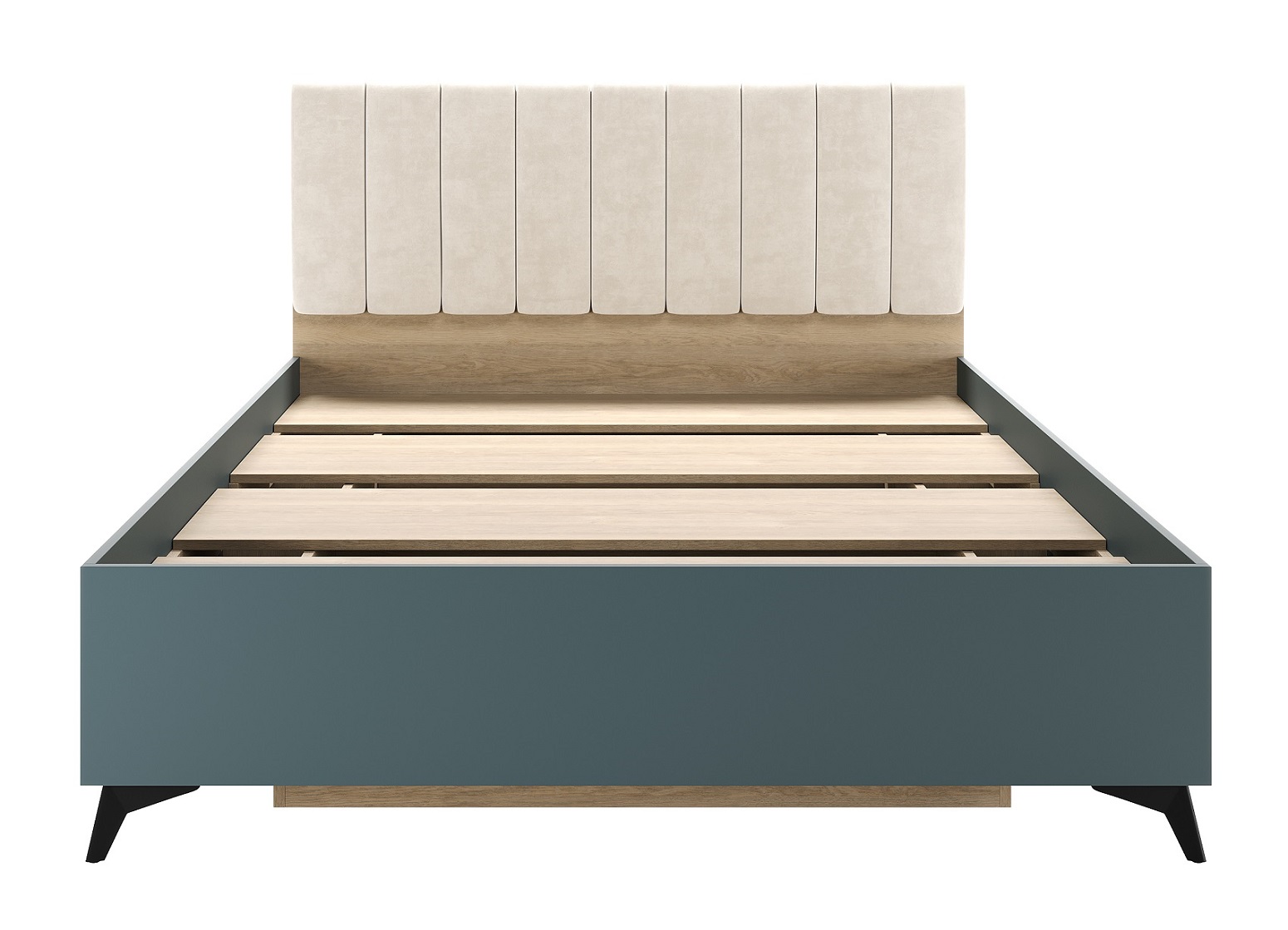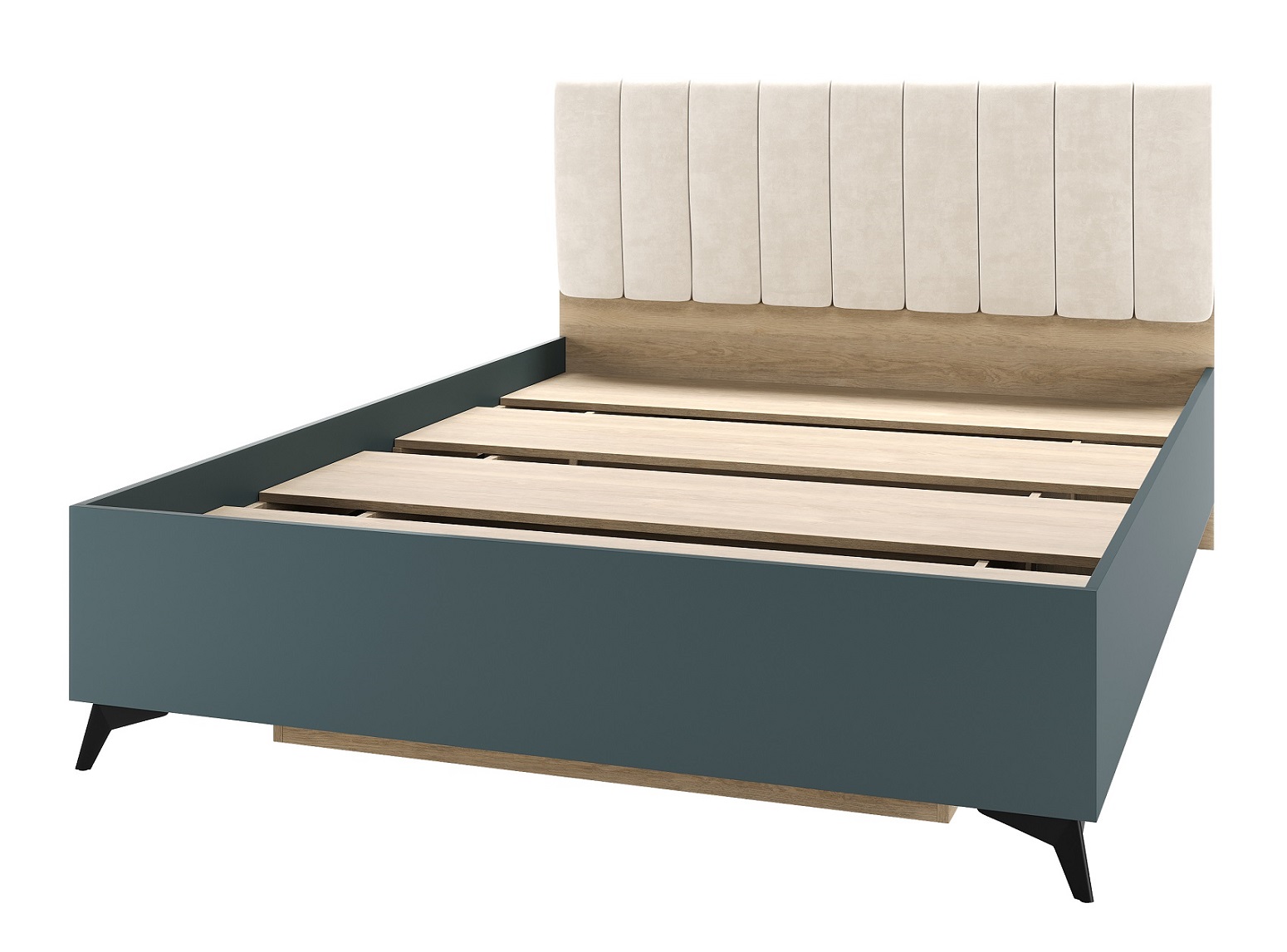 Кровать 1400 «ЕВА» с настилом ЛДСП и мягким изголовьем, обшитым качественным велюром UNIQ. Внутренний органайзер для хранения вещей. Габариты спального места: 2000 х 1400 мм. Чёрные металлические ножки-опоры.